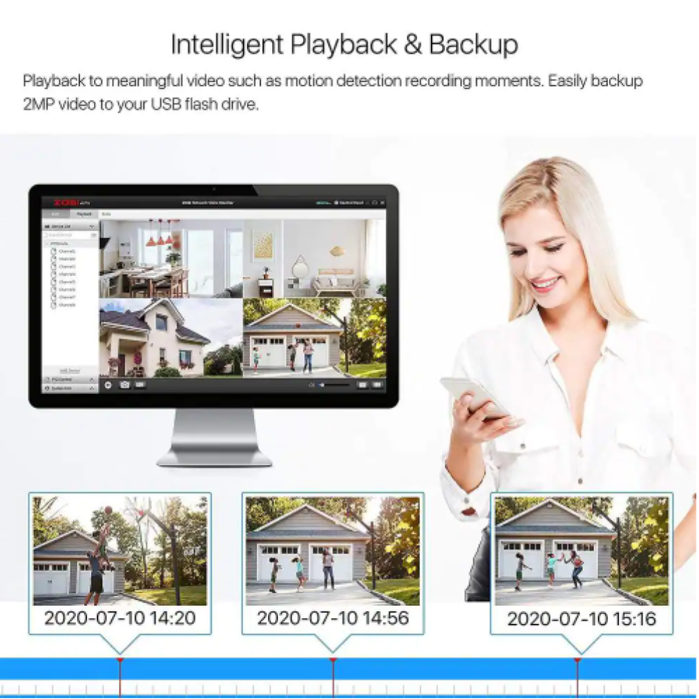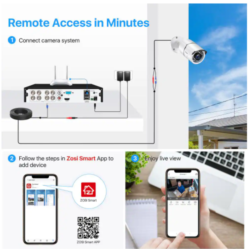 Zosi H.265+ 8-Channel 5MP-Lite 2TB Hard Drive DVR Security Camera System with 8X 1080p Wired Bullet Cameras