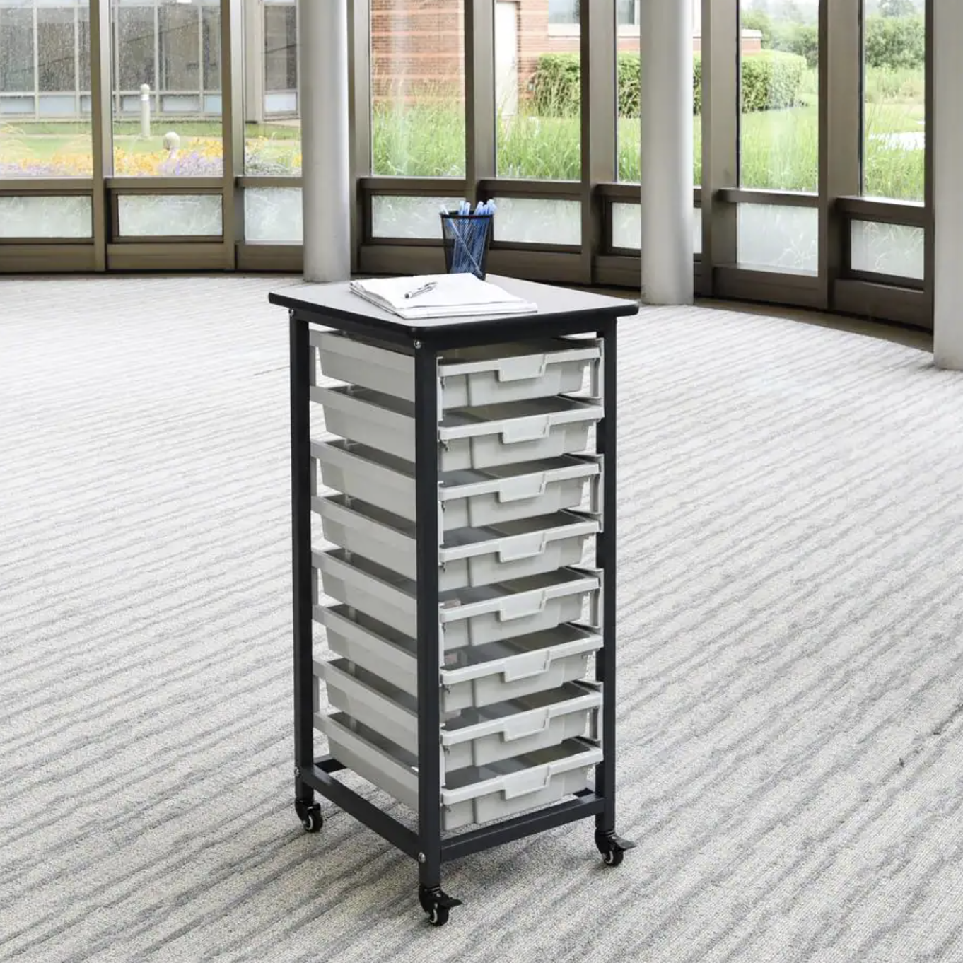 Alpine Industries 40 Gal. Black Wood Commercial Tray Top Waste Enclosure Trash Receptacle