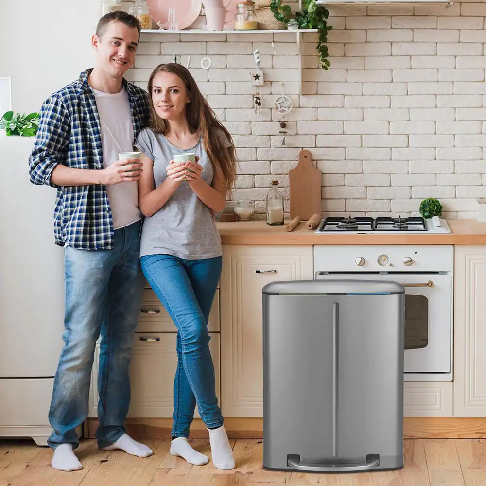 Happimess Marco Rectangular 10.5 Gal. Double Bucket Trash Can with Soft-Close Lid