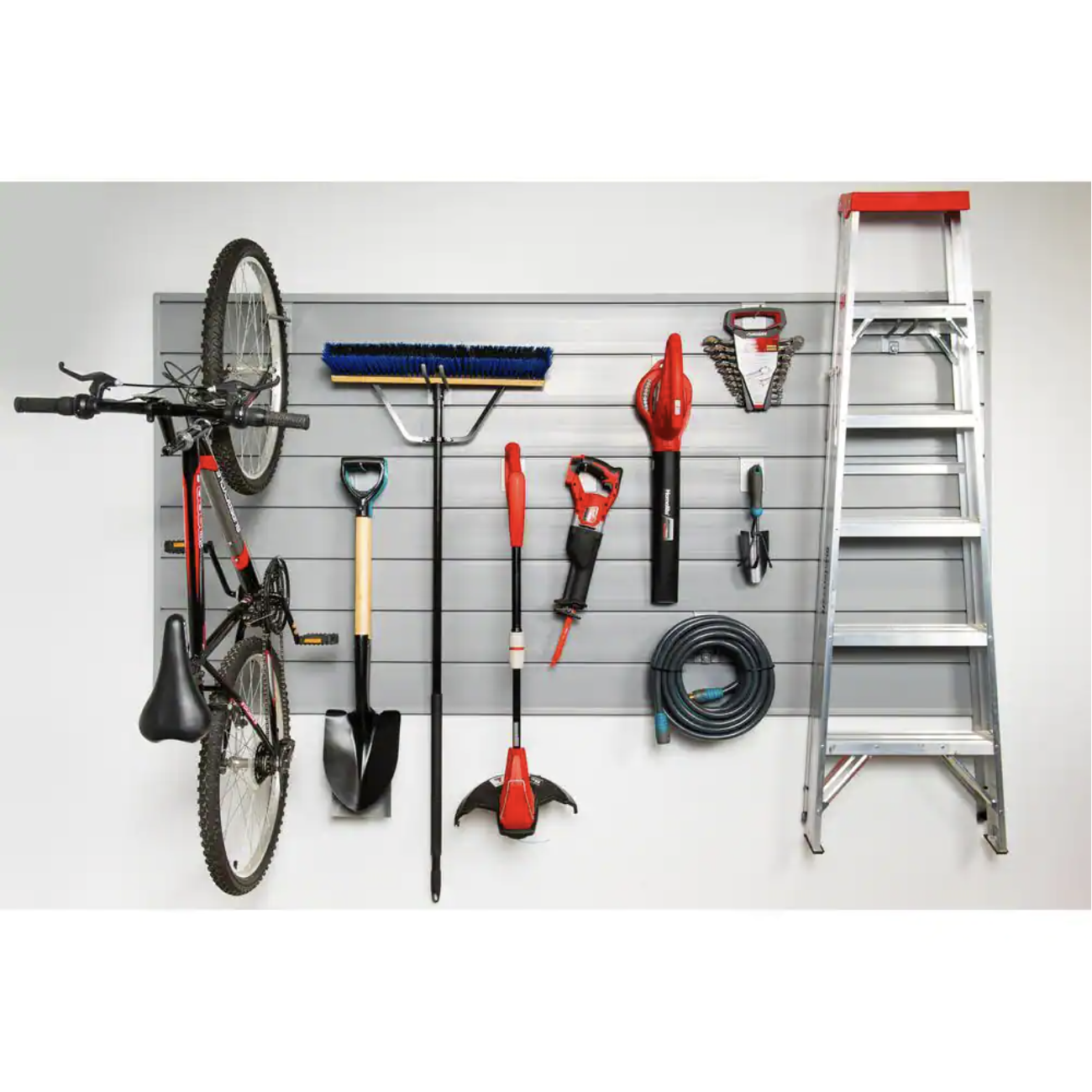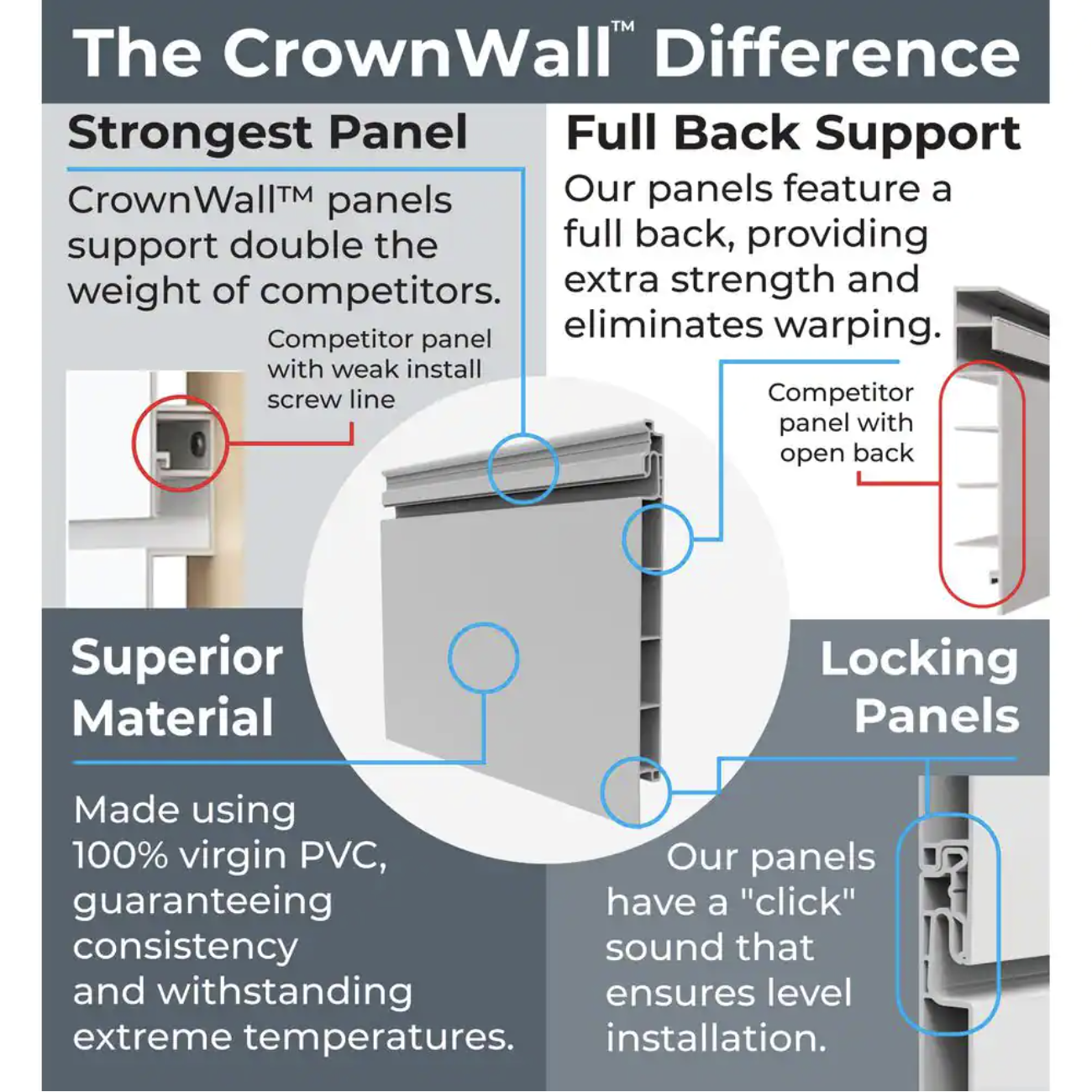 Crownwall 48 in. H x 96 in. W Starter Bundle PVC Slatwall Panel Set with Locking Hook Kit in Sandstone (10-Piece)