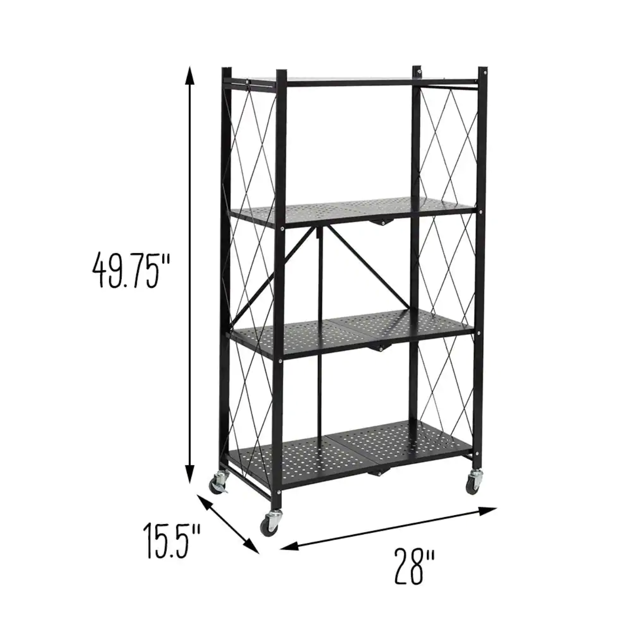 Honey-Can-Do 4-Tier Steel Collapsible 4-Wheel Utility Cart in Black
