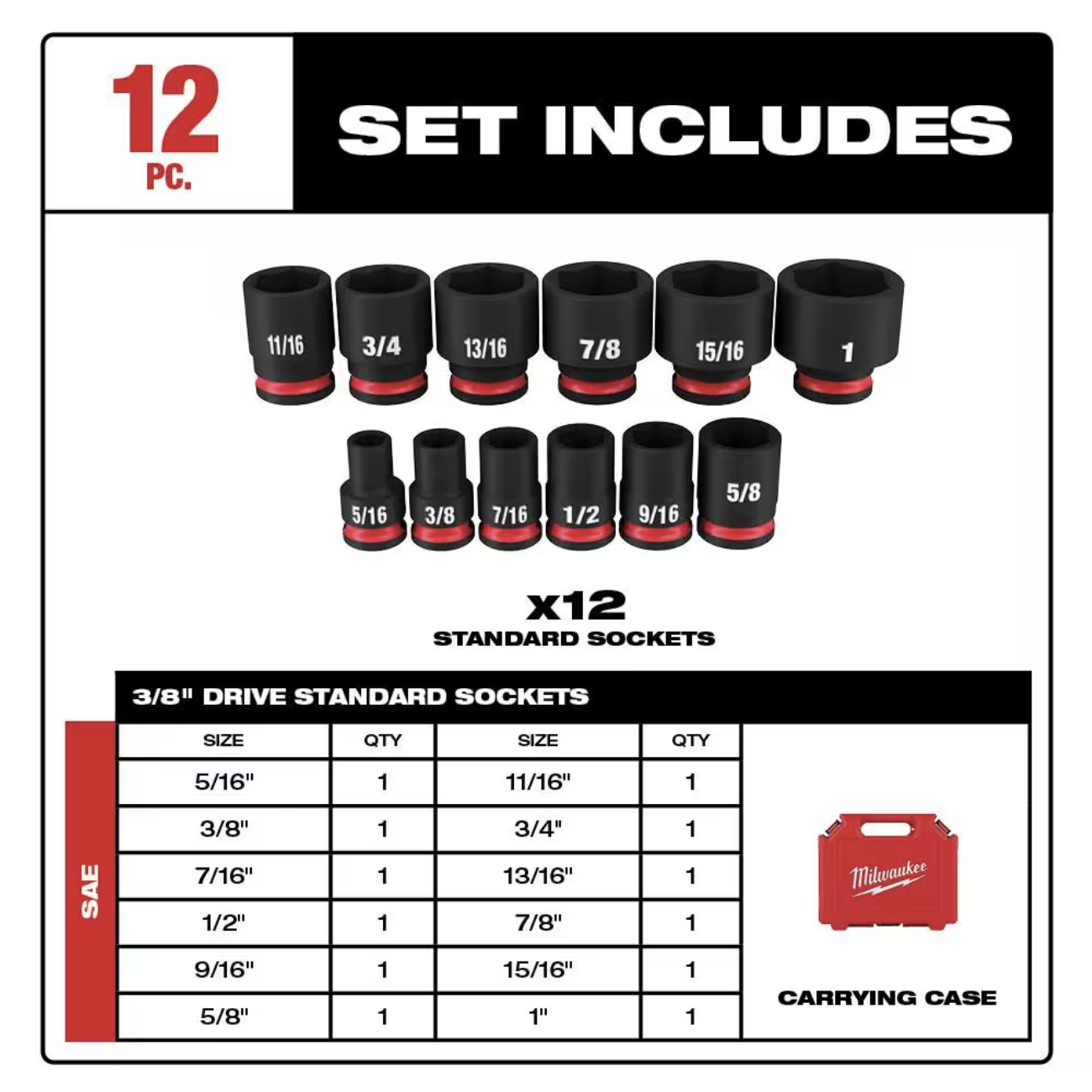 Milwaukee M18 FUEL GEN-3 18V Lithium-Ion Brushless Cordless 3/8 in. Compact Impact Wrench with Impact Socket Set (12-Piece)