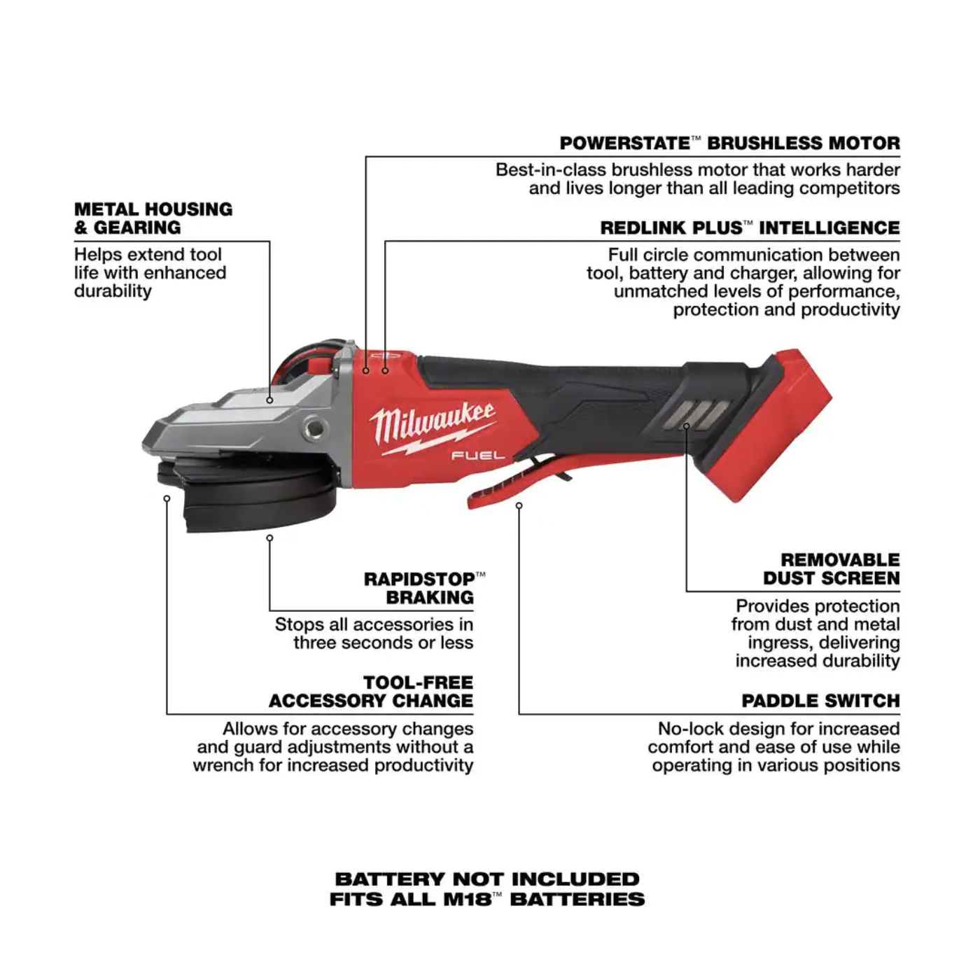 Milwaukee M18 Fuel 18V Lithium-Ion Brushless Cordless 5 in. Flathead Braking Grinder with Paddle Switch No-Lock (Tool-Only)