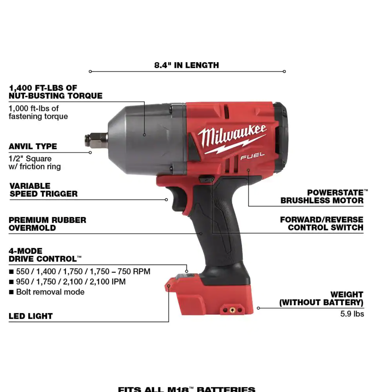 Milwaukee M18 FUEL 18V Lithium-Ion Brushless Cordless 1/2 in. Impact Wrench with Friction Ring With Protective Boot