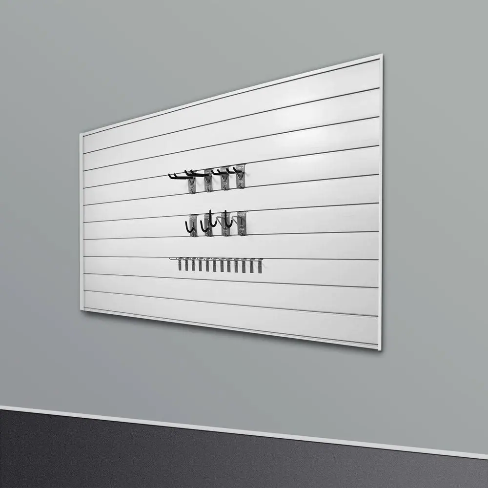 Proslat PVC Slatwall 8 ft. x 4 ft. White Hook Kit Bundle (20-Piece)