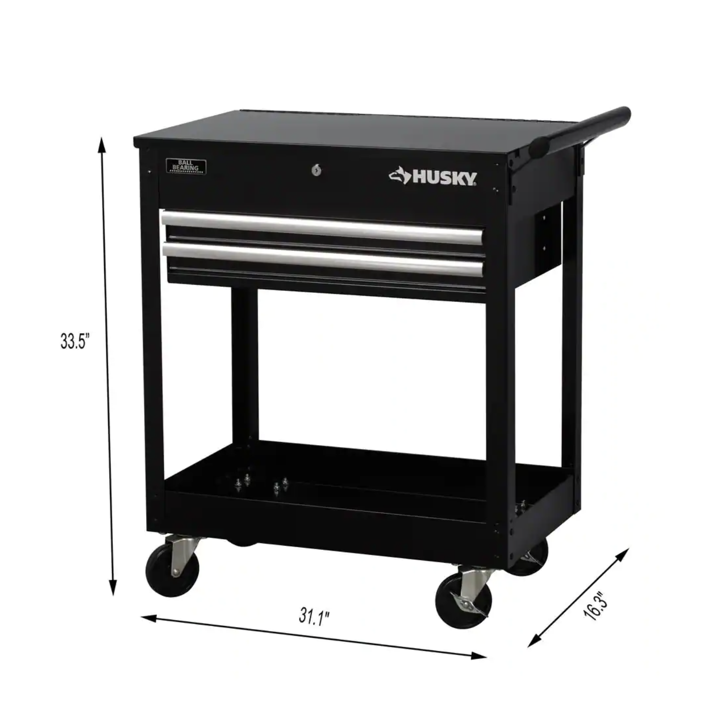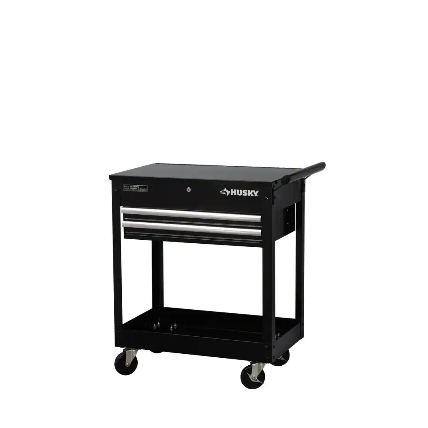Husky 28 in. W x 16.3 in. D Standard Duty 2-Drawer Rolling Tool Utility Cart With Lift-Top in Gloss Black