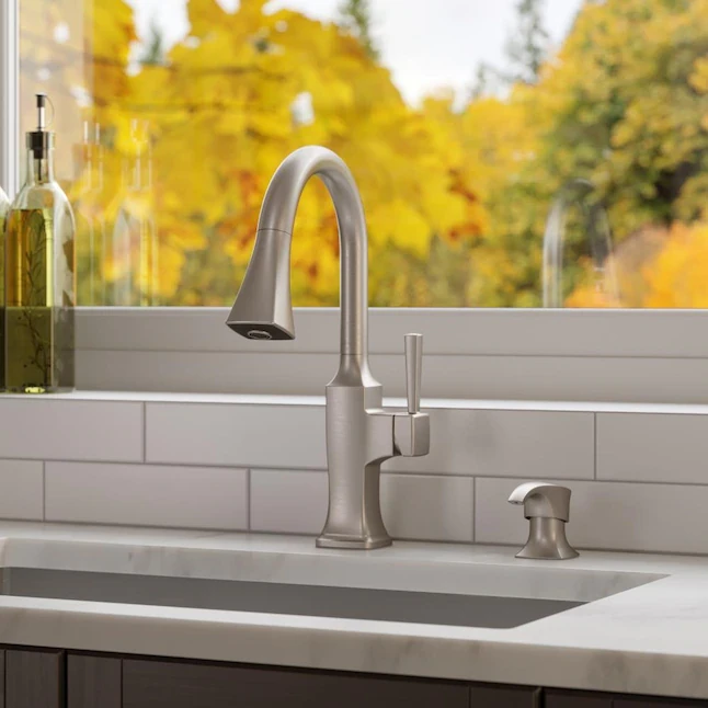 Pfister Kroft Spot Defense Stainless Steel Single Handle Deck-mount Pull-down Handle Kitchen Faucet (Deck Plate Included)