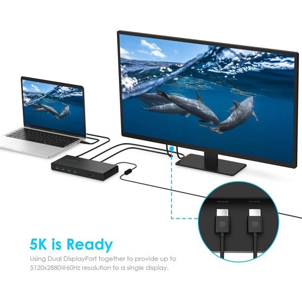 Lention 5K USB C&USB A Docking Station With Dual HDMI & Display Port