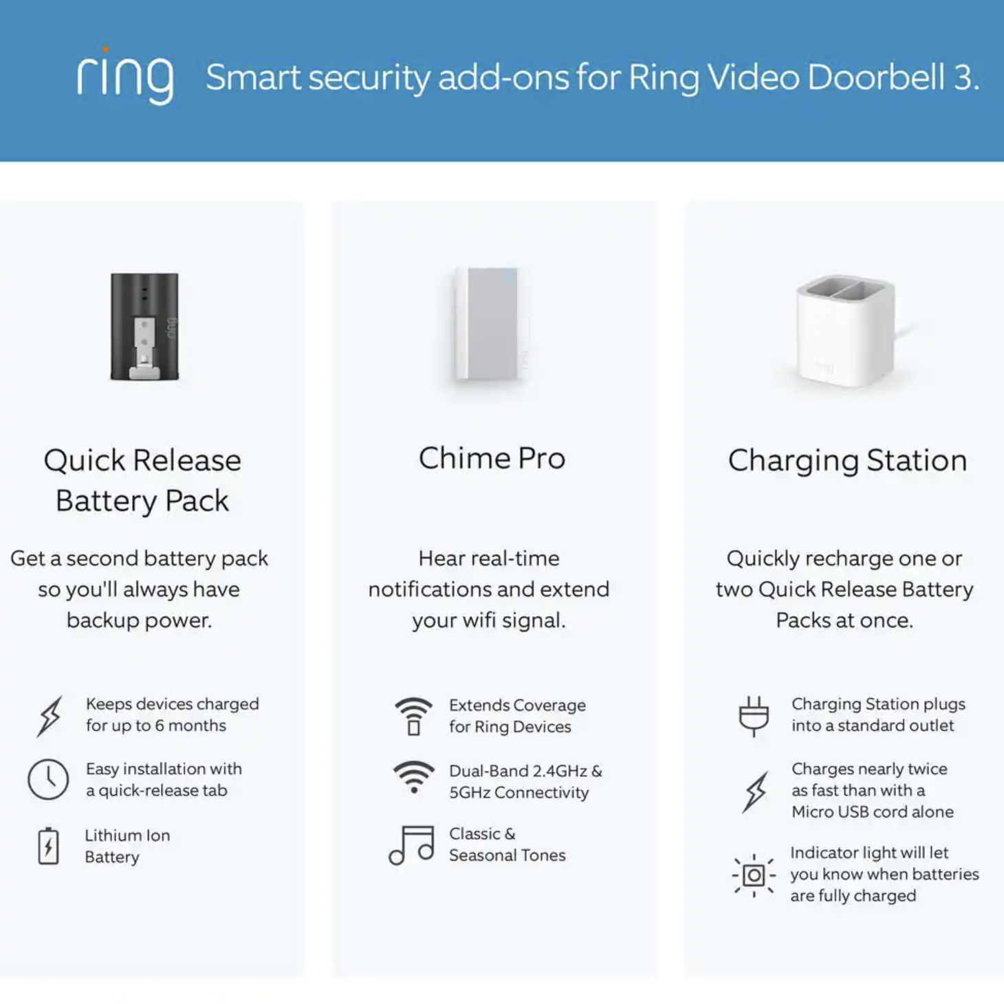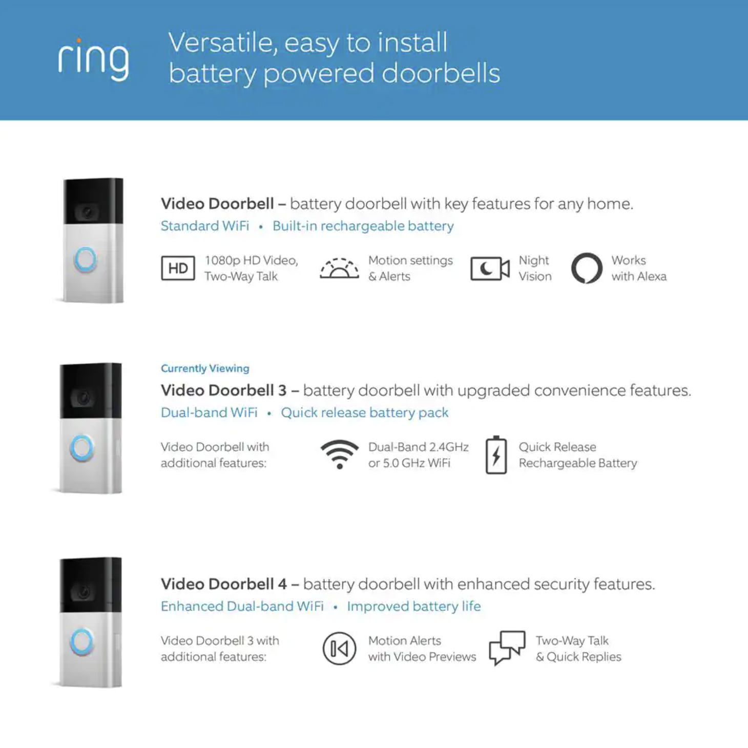 Ring 1080p HD Wi-Fi Wired and Wireless Video Doorbell 3 Smart Home Camera Removable Battery Works with Alexa (8VRSLZ-0EN0)