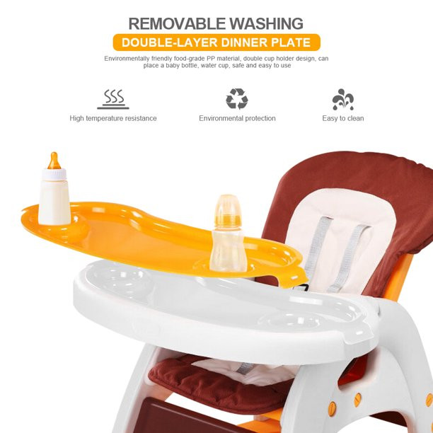 Hommoo 3 In 1 Baby High Chair. Convertible Play Table And Chair Set For Toddler. Adjustable Seat Back. Yellow