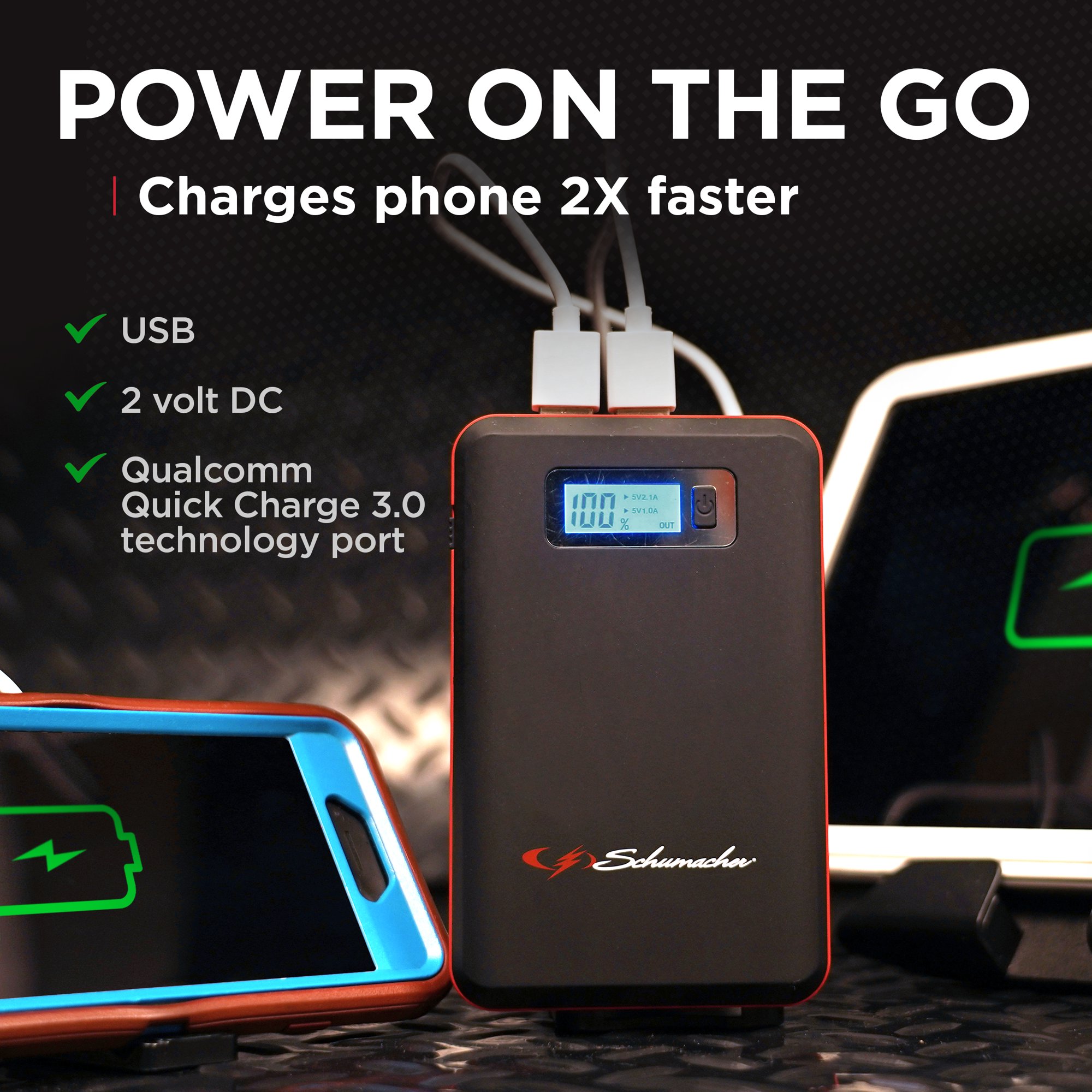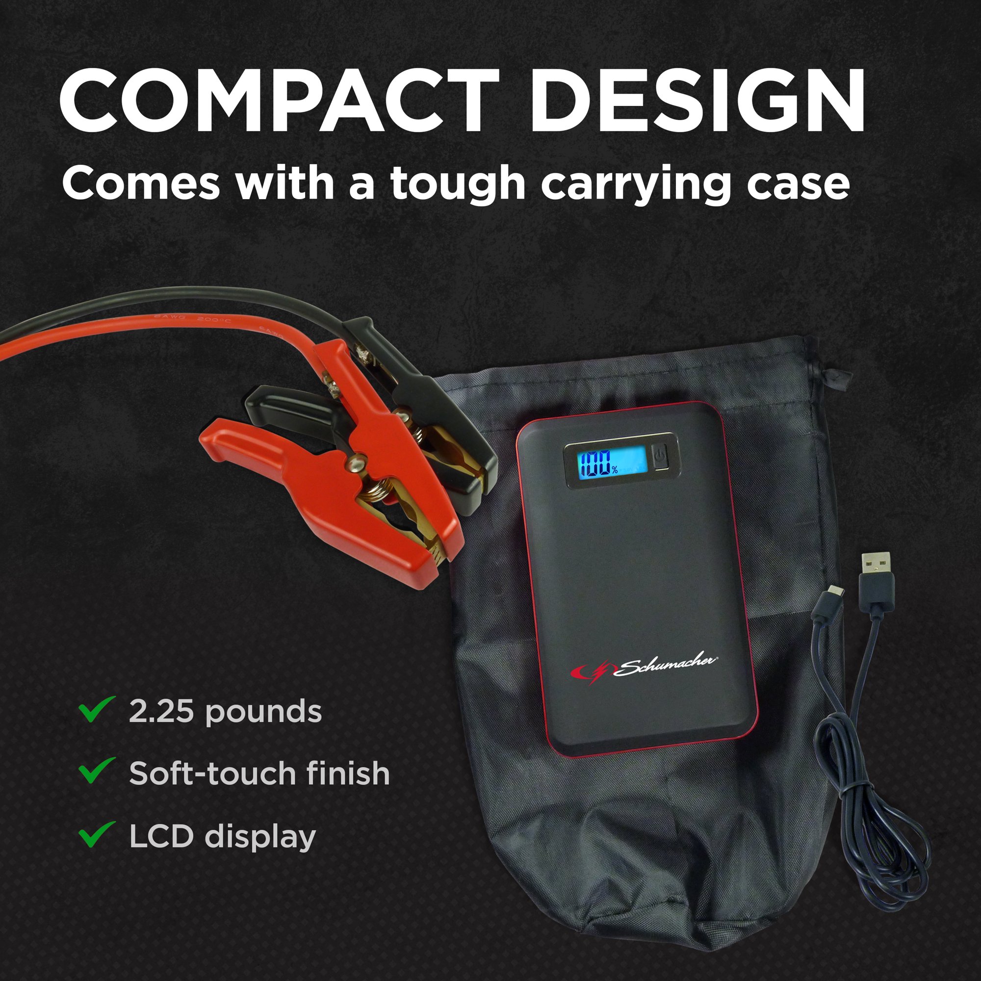 Schumacher SL1314 Electric Rechargeable Lithium Jump Starter and Power Pack with USB and 12V DC Charging Ports. 600 Amp