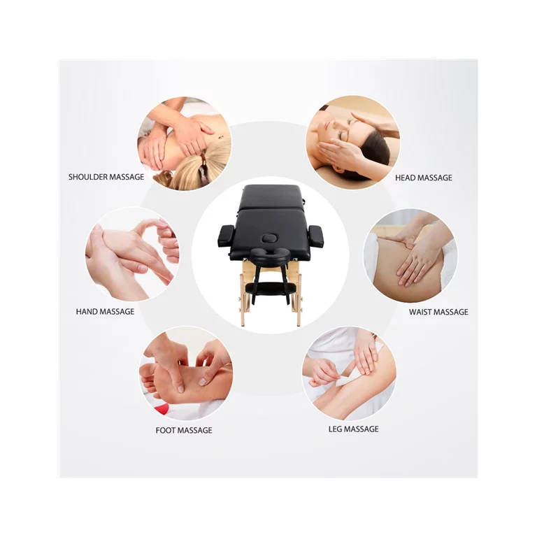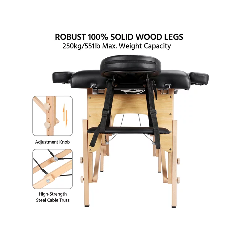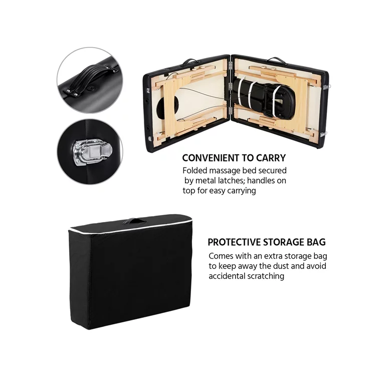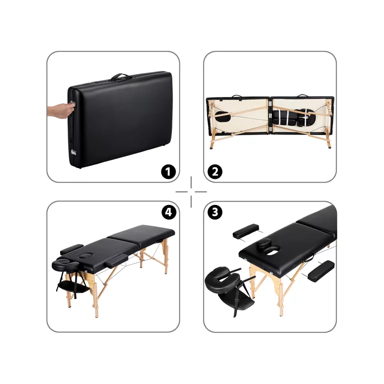 SmileMart 84″ Wooden Portable 2 Section Massage Table. Black