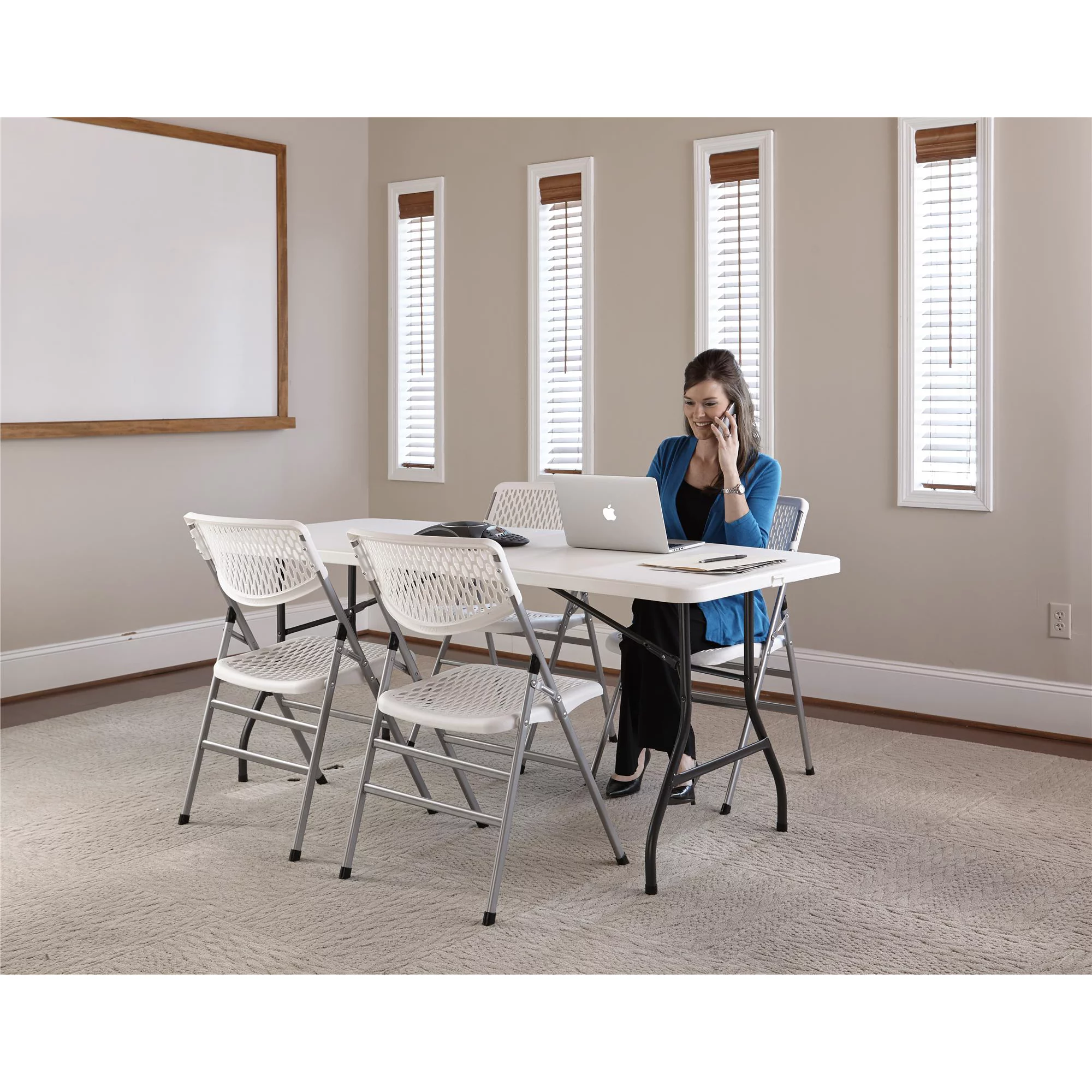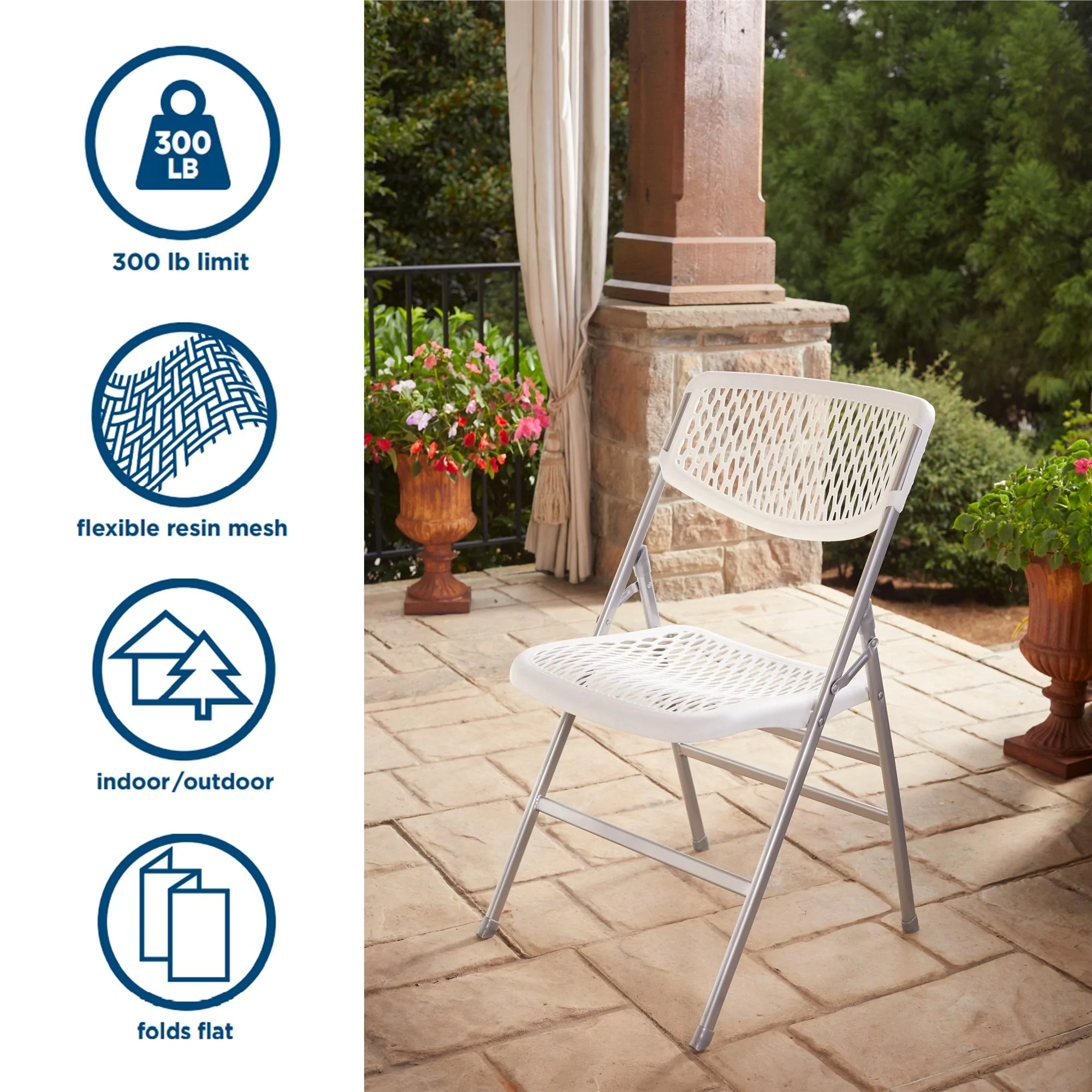 Cosco Ultra Comfort Commercial XL Plastic Folding Chair. Triple Braced. White. 4-Pack