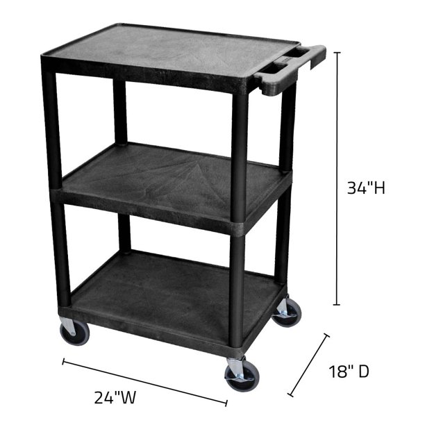 Luxor 24×18 Structural Foam Plastic Utility Cart - 3 Shelves. Black