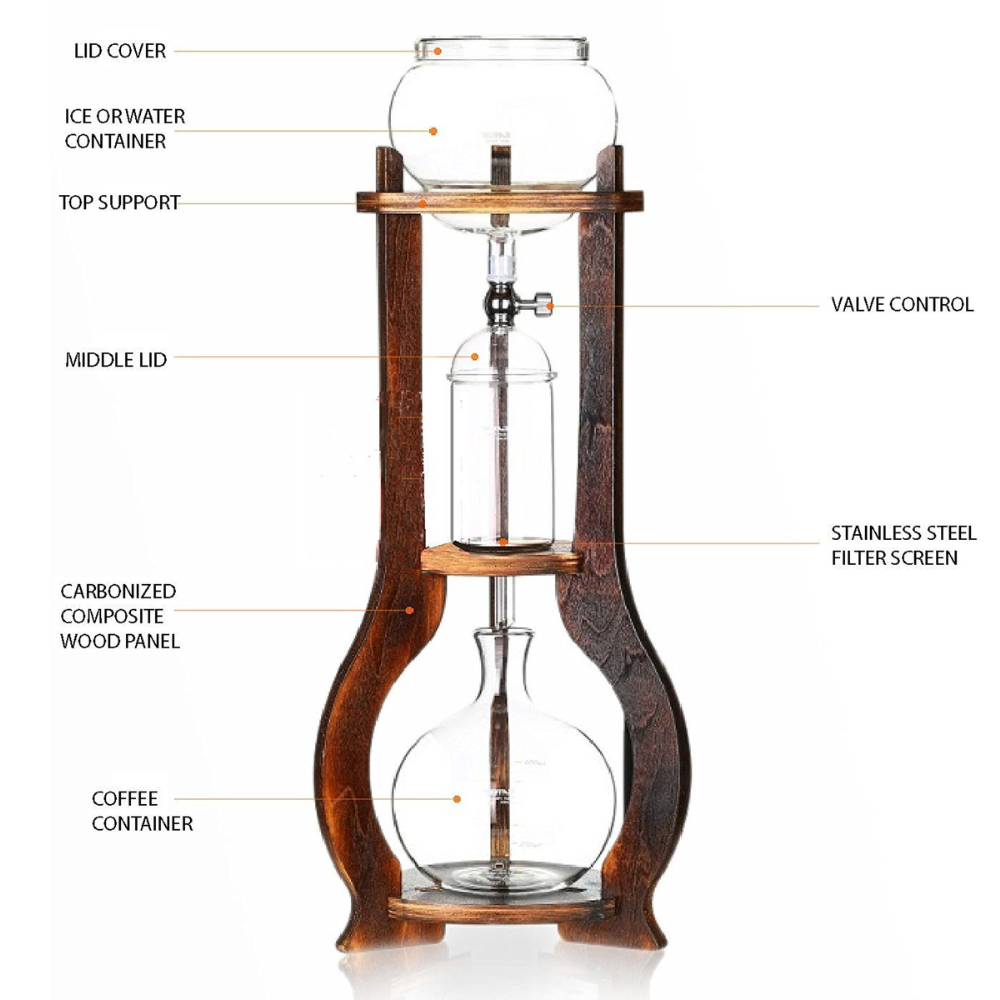 Nispira Iced Coffee Cold Brew Dripper Maker Wooden. 6-8 Cup