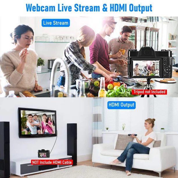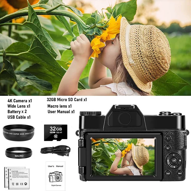 Yixinxin Digital Video Camera For YouTube 4K Video Camera 48MP 30FPS Vlogging Camera Camcorder
