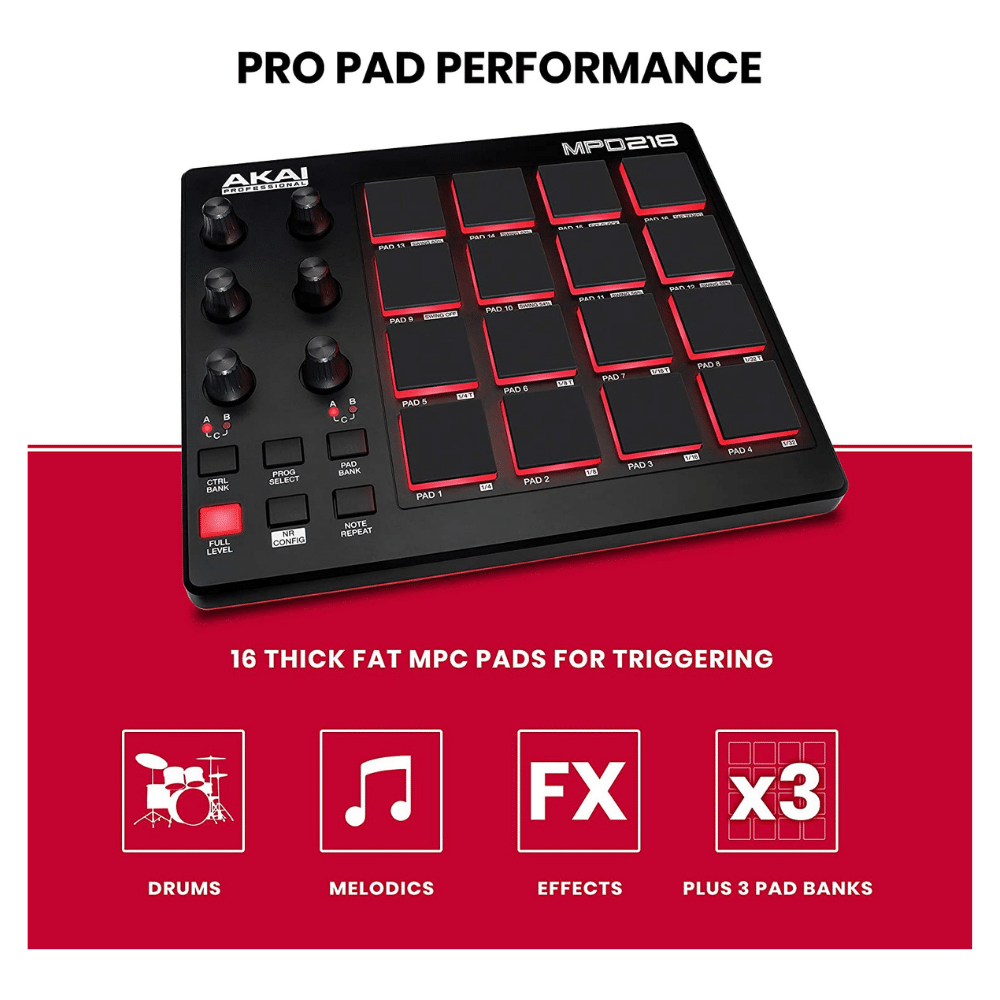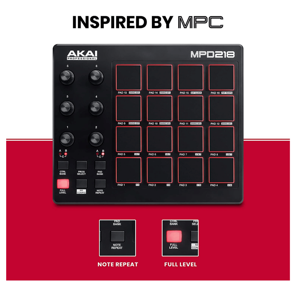 AKAI Professional MPD218 - USB MIDI Controller With 16 MPC Drum Pads. 48 Pad Banks