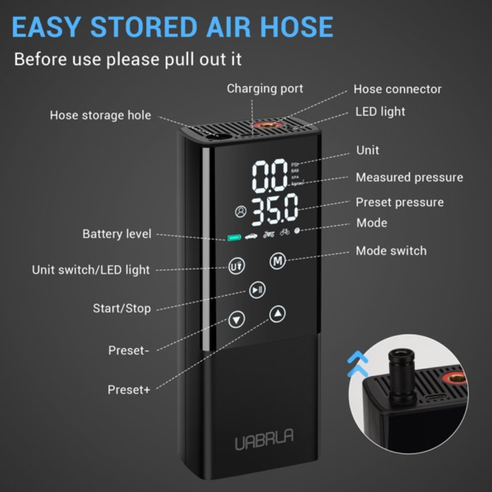 Uabrla Portable Air Compressor Tire Inflator: Tire Pump Car Tire Inflator with Digital Pressure Gauge