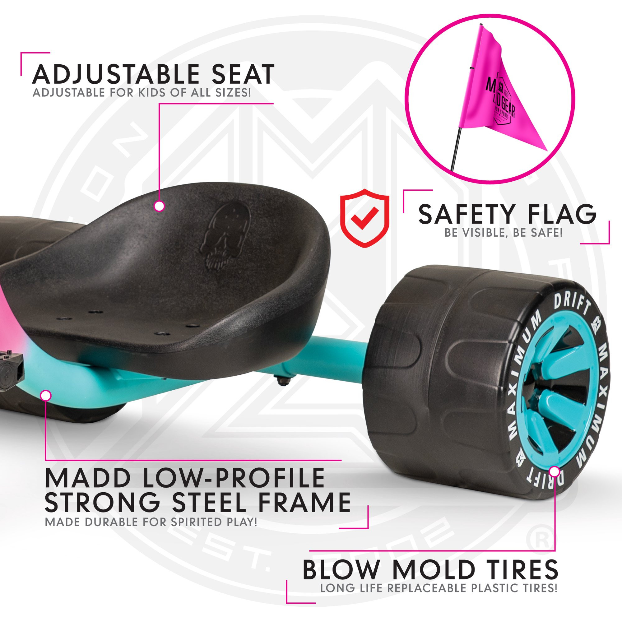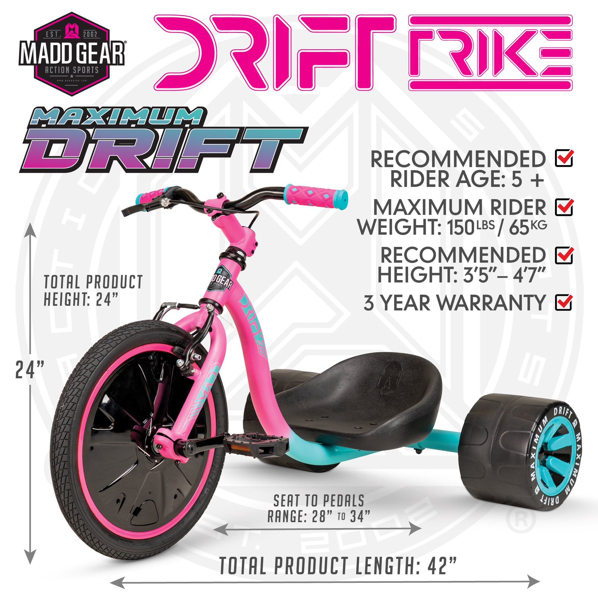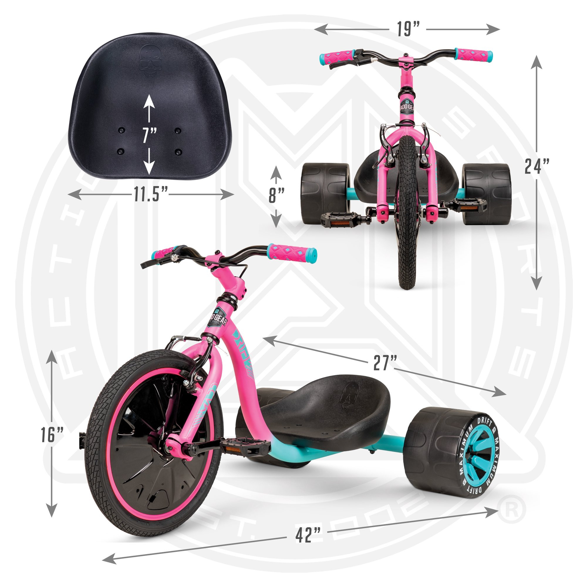 Madd Gear 16″ Mini Drift Trike. Steel Frame Tricycle. Unisex- Pink. for Ages 5 and up