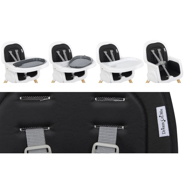 Dream On Me Lulu 2-In-1 Highchair. Convertible. Compact High Chair. Light Weight. Portable. Black