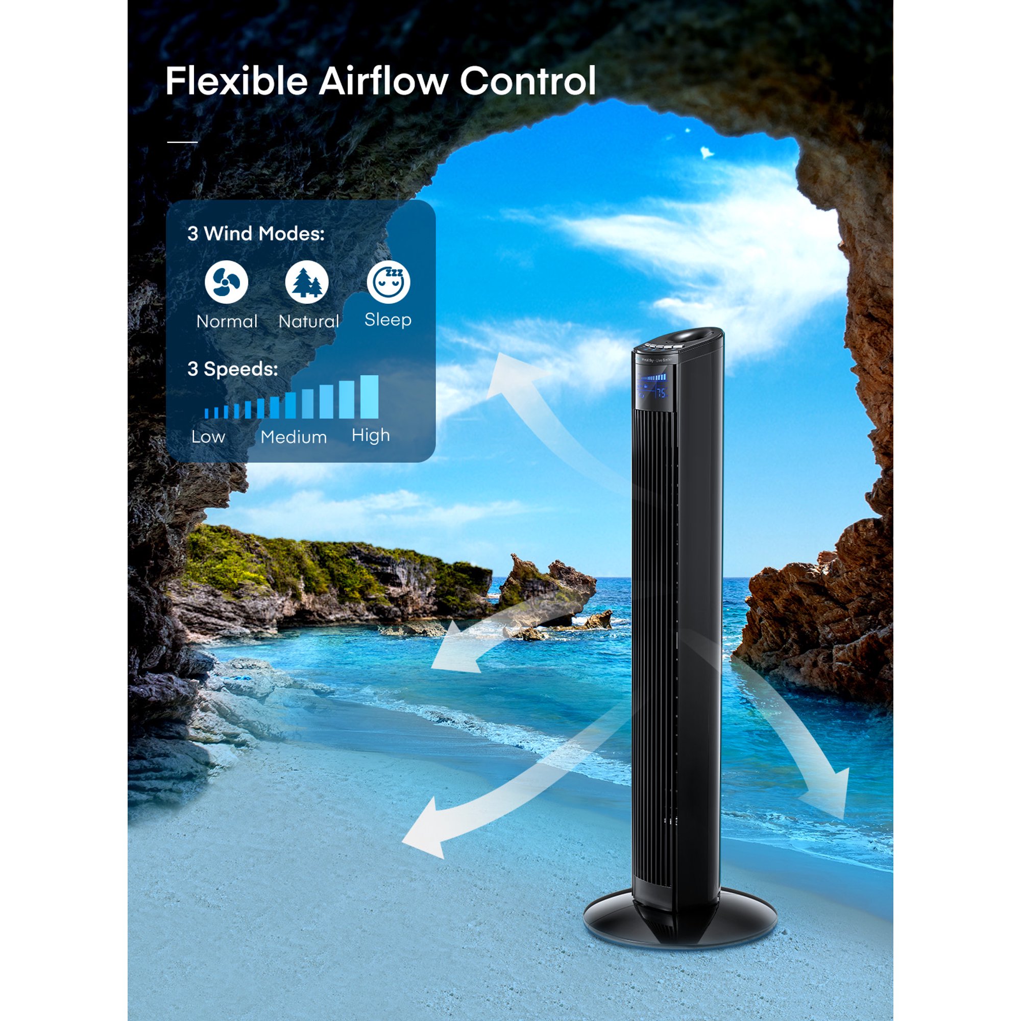 iTvanila 36″ Oscillating Tower Cooling Fan with Remote Control. Portable Stand up Floor Bladeless Fan. Black