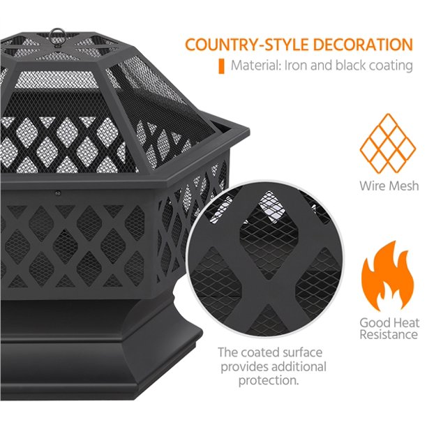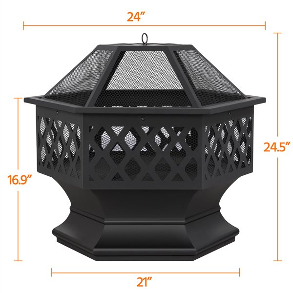 SmileMart 24-in Metal Fire Pit Garden Stove Brazier for Outdoor Patio Backyard Camping Garden