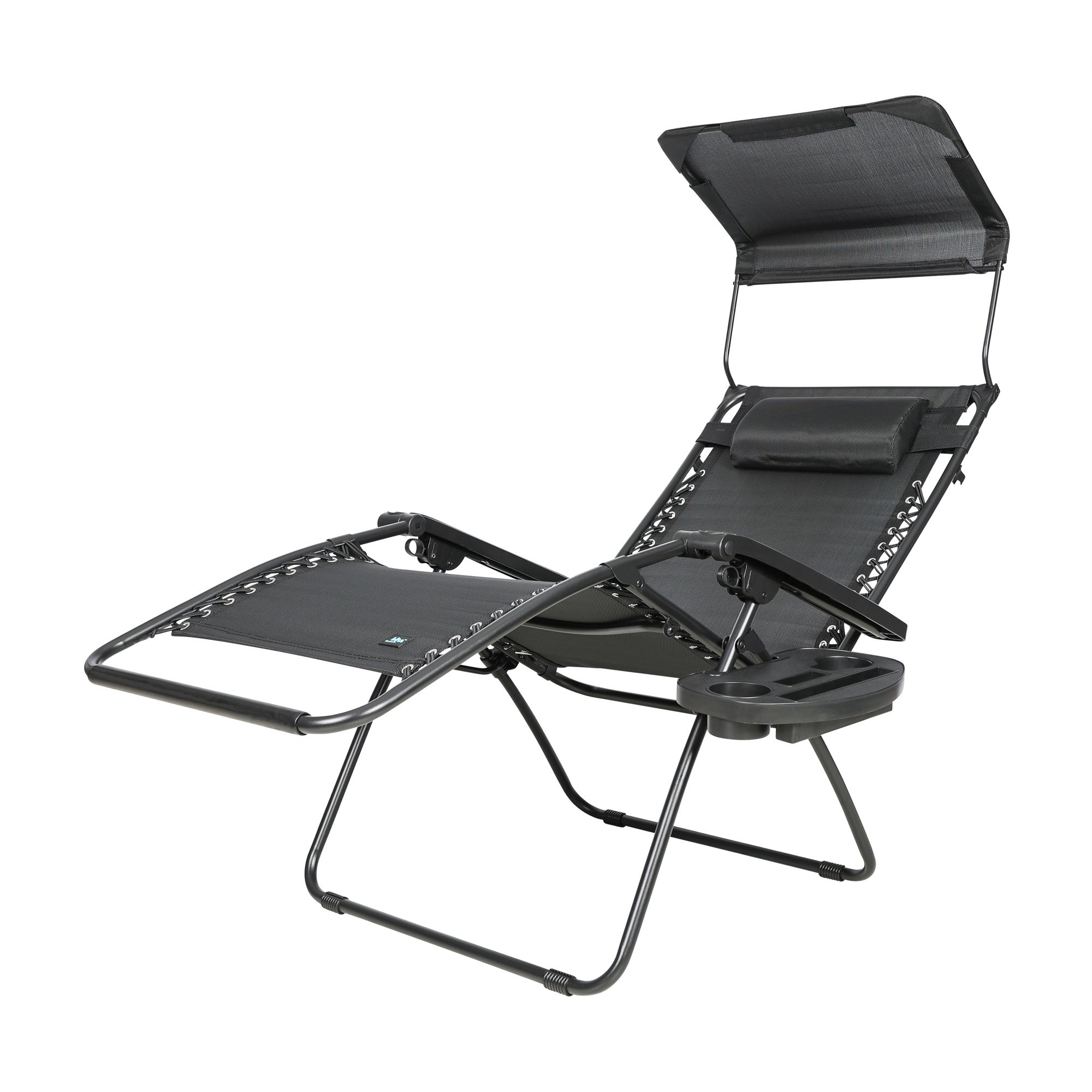 Bliss Hammocks 30″ Wide XL Zero Gravity Chair w/ Canopy. Pillow. & Drink Tray. 360 lbs Capacity. Black