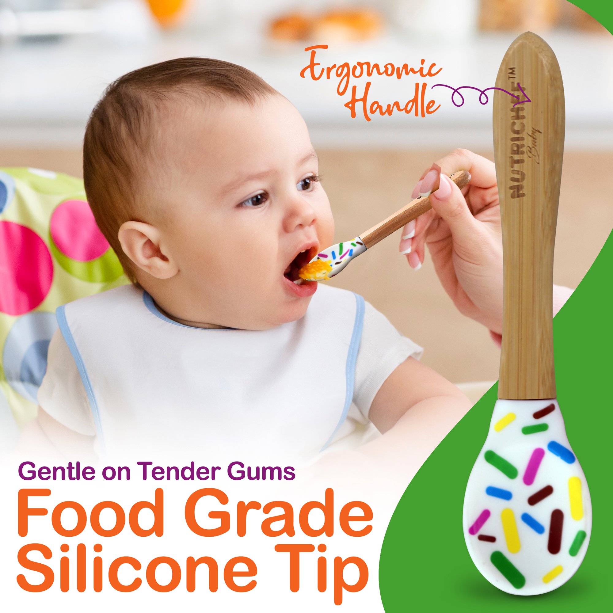 NutriChef Baby Bamboo Dinnerware Set - 3 Partition Wooden Toddler Plate. Bowl. Cup & Spoon w/ Silicone Suction Base. Sparkle