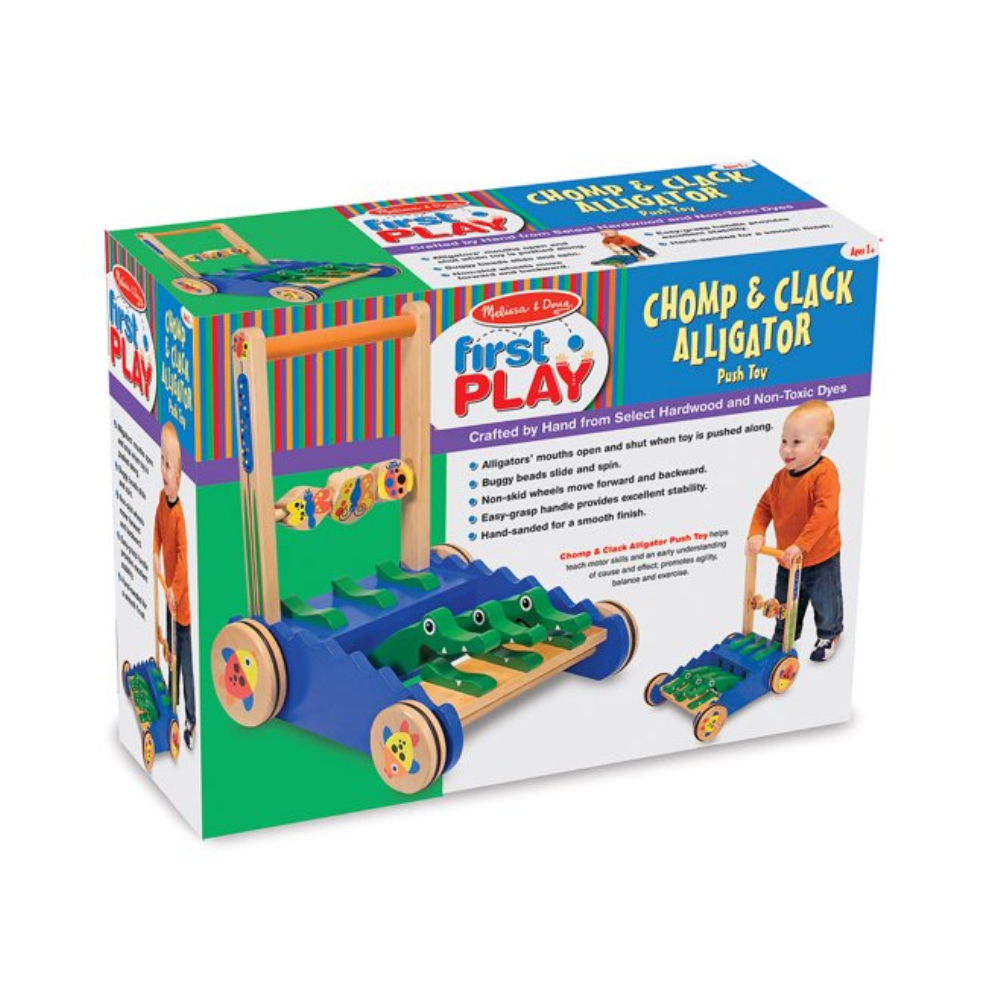 Melissa & Doug Deluxe Chomp and Clack Alligator Wooden Push Toy and Activity Walker