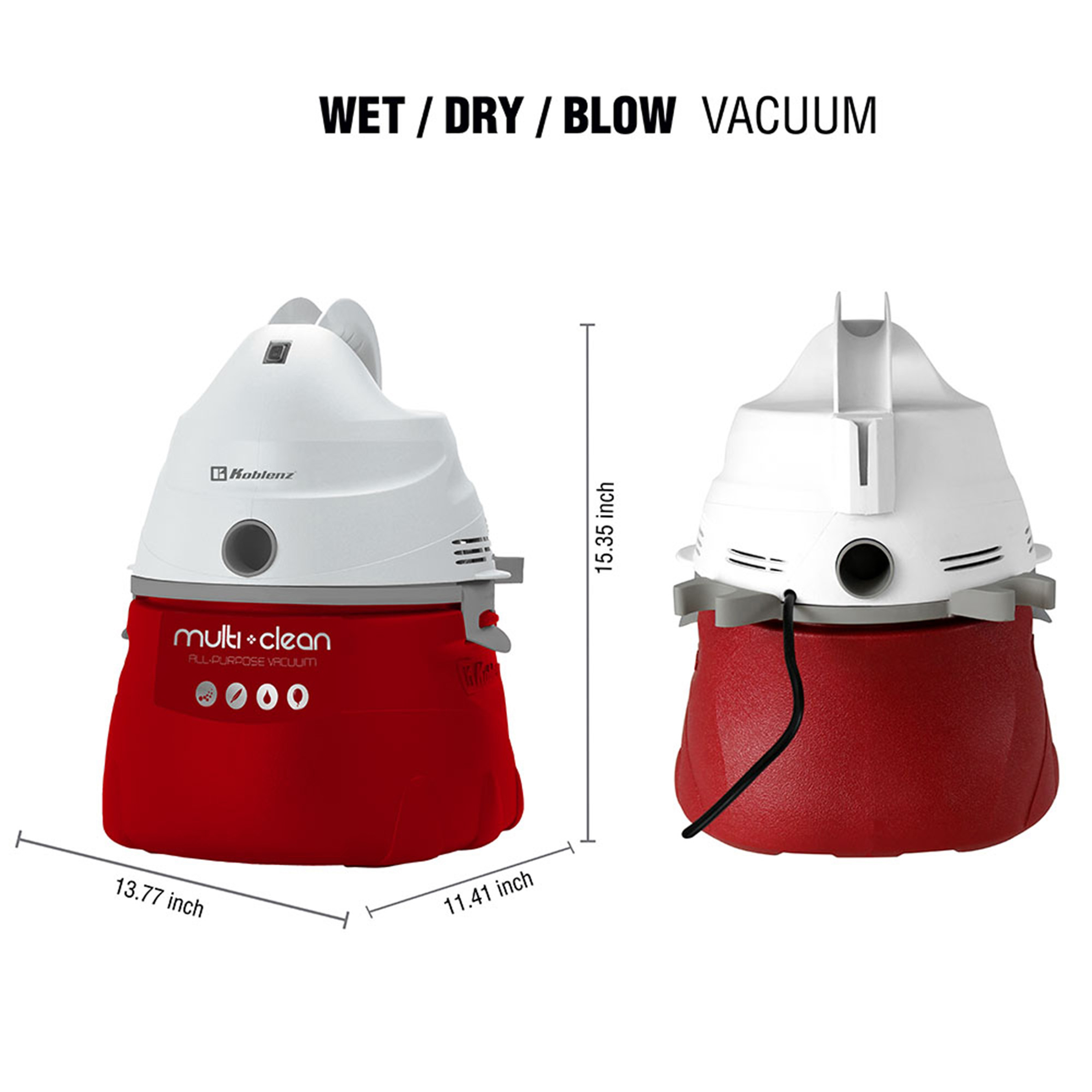 Koblenz Designer Series Wet-Dry-Blow Vacuum 3 Gallon. 2 Peak HP 3-in1 Vac (WD-355K2)
