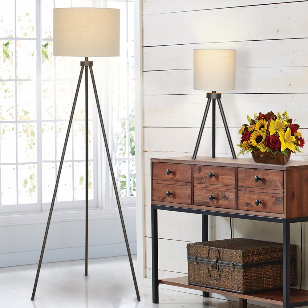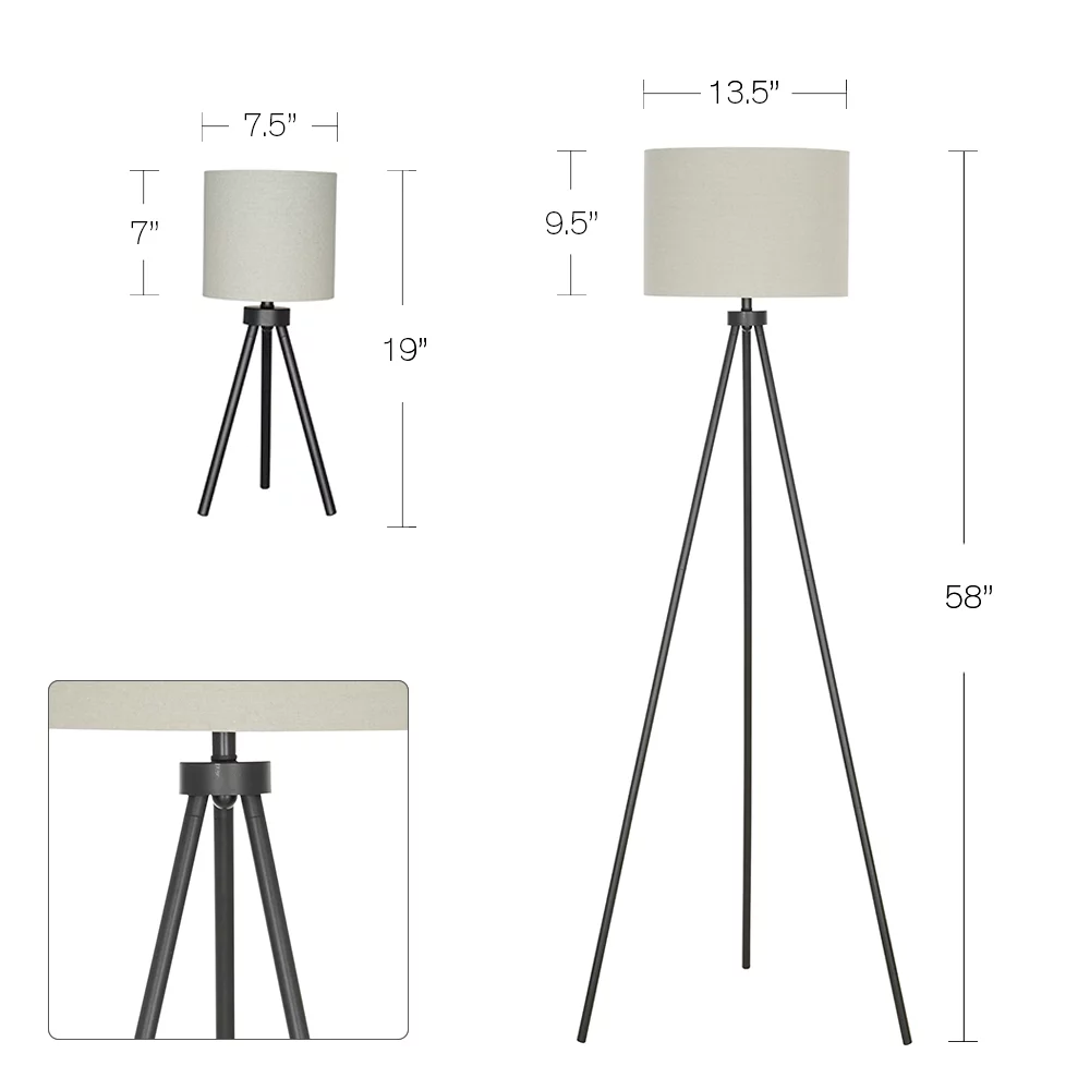 Better Homes & Gardens Modern Tripod Table & Floor Lamp Set. Black