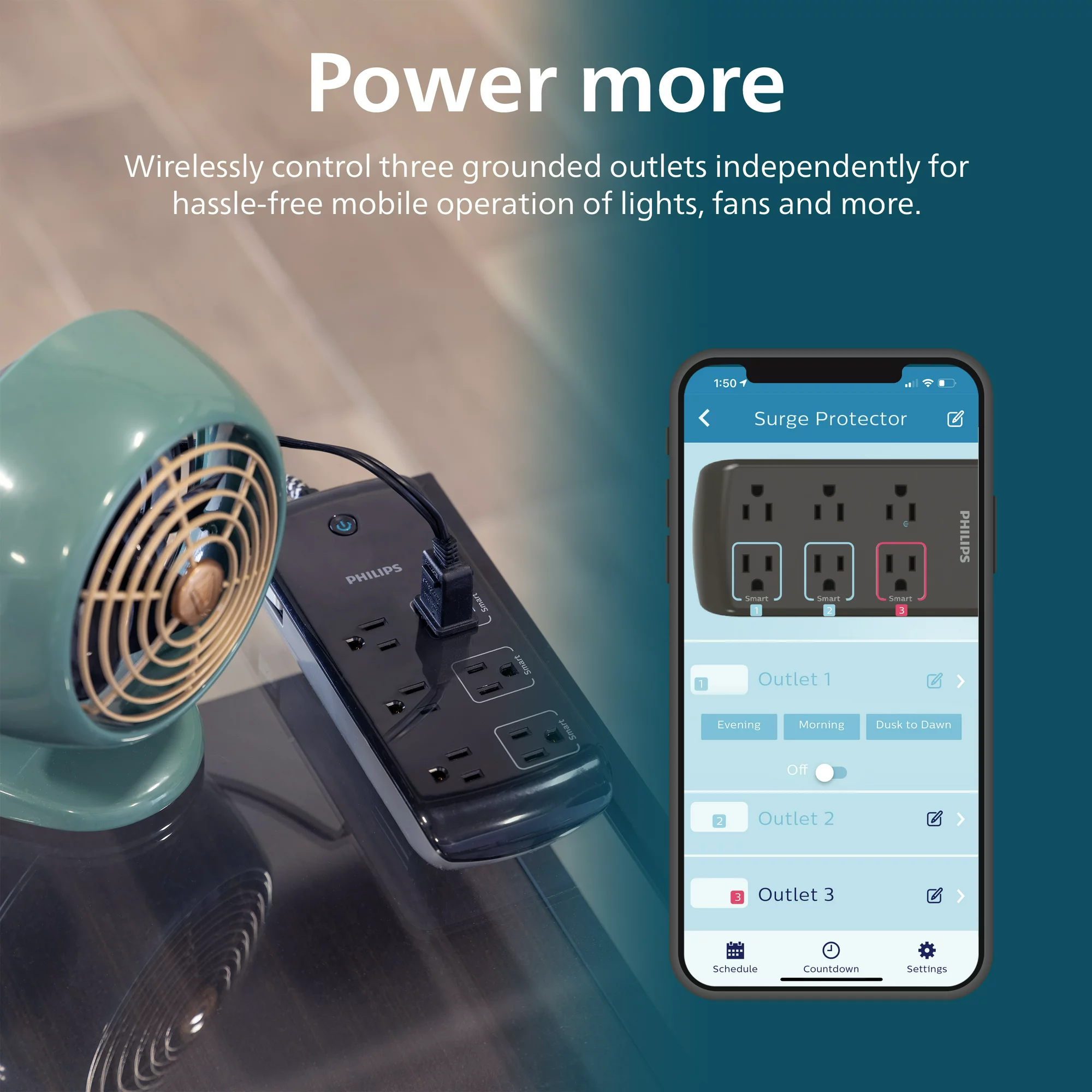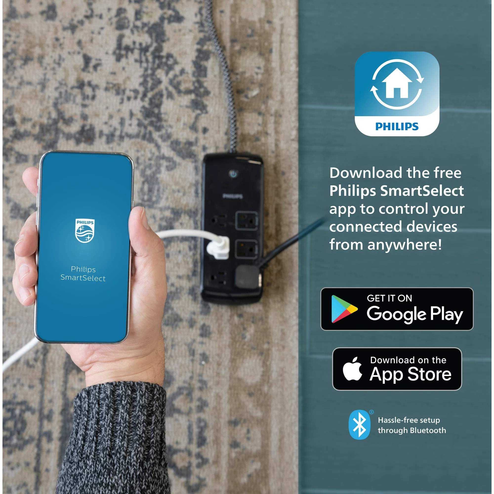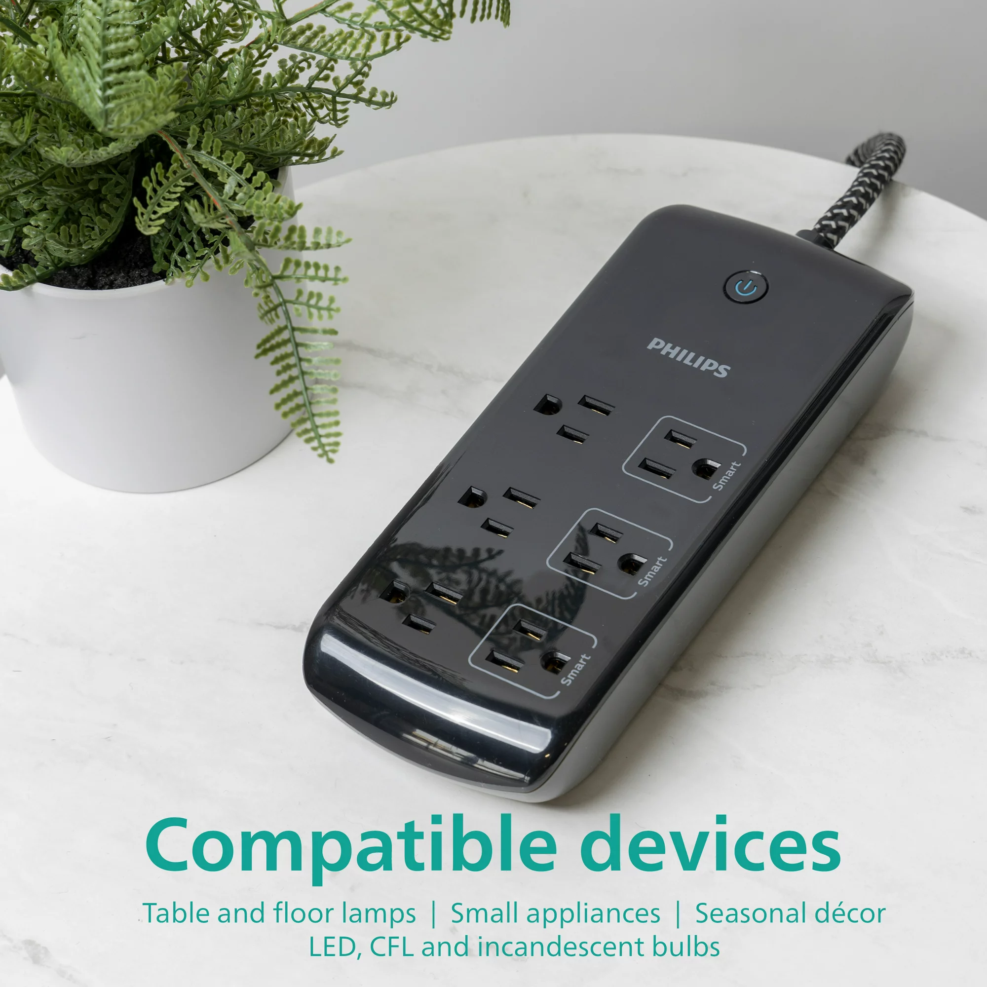 Philips Smart Plug 6-Outlet Surge Protector. 1080J 8ft.. Black