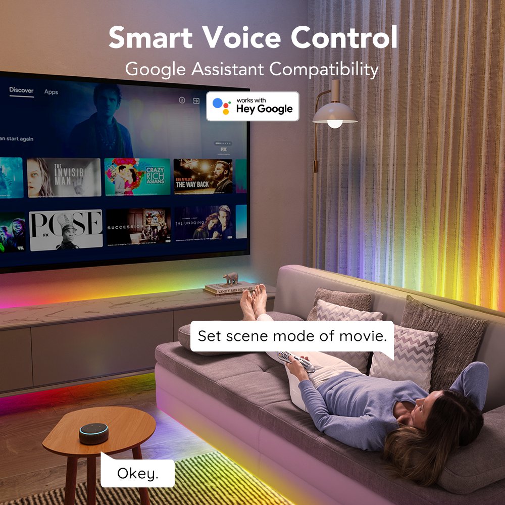 Govee 24.6ft Wi-Fi RGBIC LED Strip Light. 16 Million Light Color. 24W with Silicone Coating