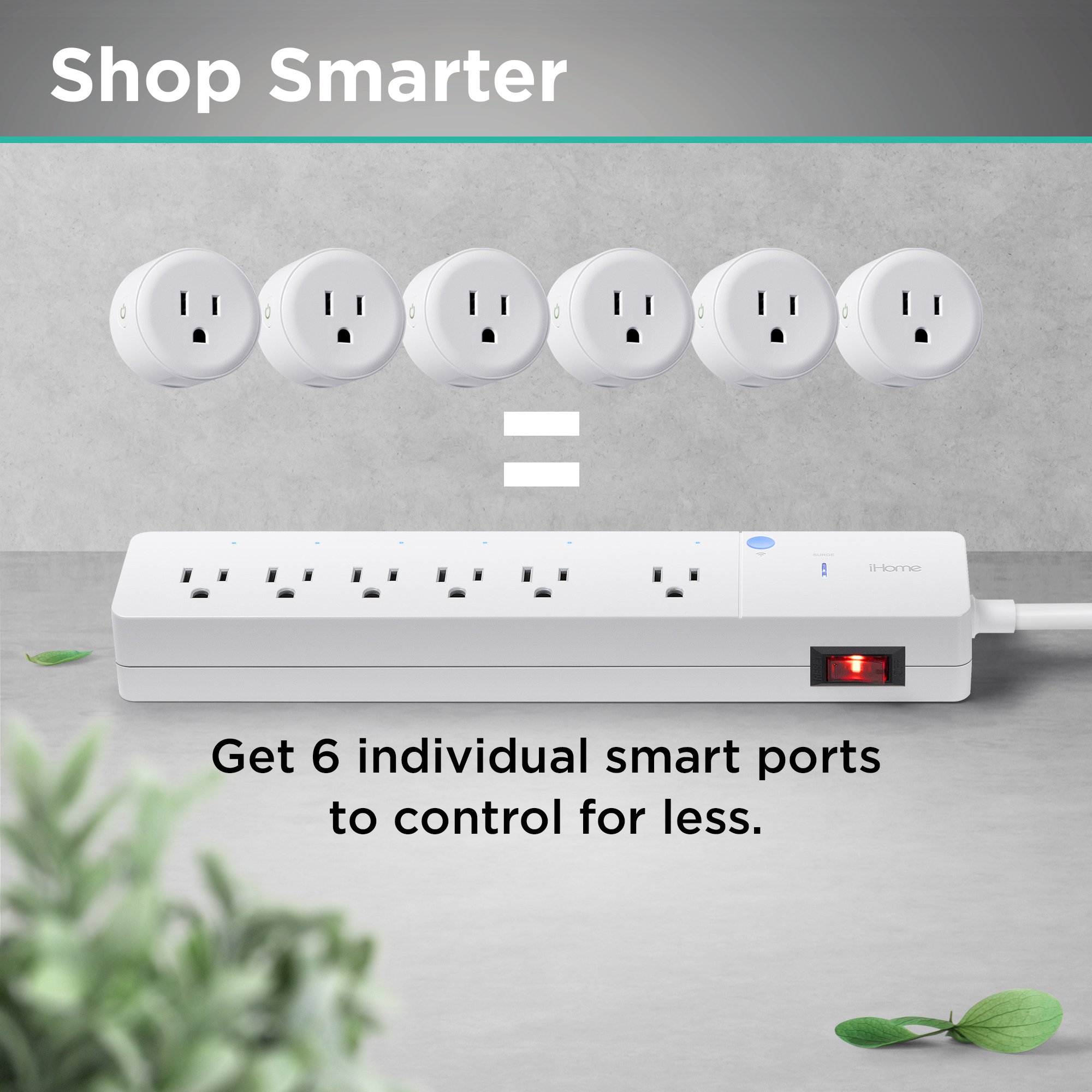 iHome 6 Outlet Smart Surge Protector Works with Alexa and Google Home. App Control. and Timer. 3 Prong