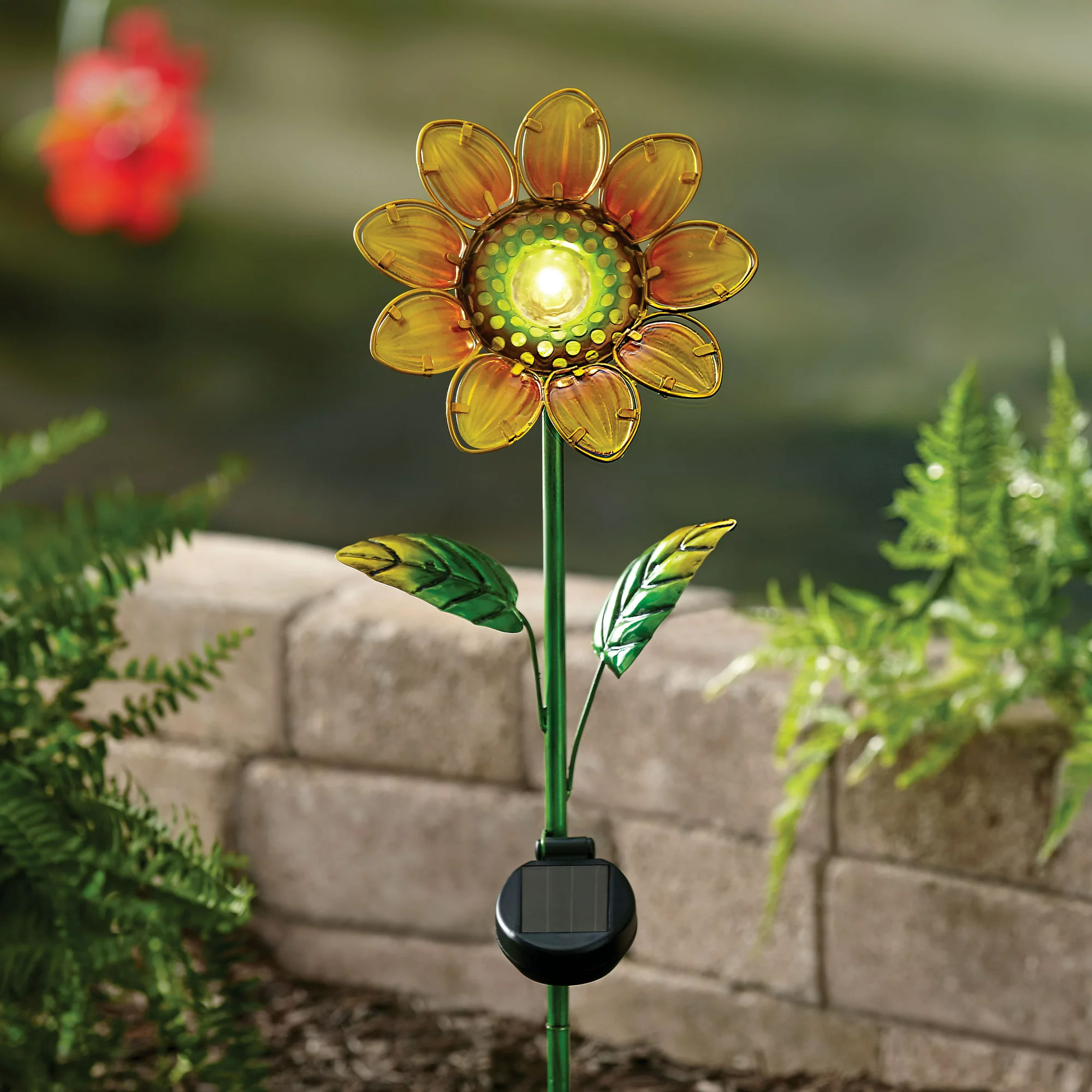 Better Homes & Gardens 30.3″ Sunflower Solar Powered Glass Garden Stakes (4 Pieces)