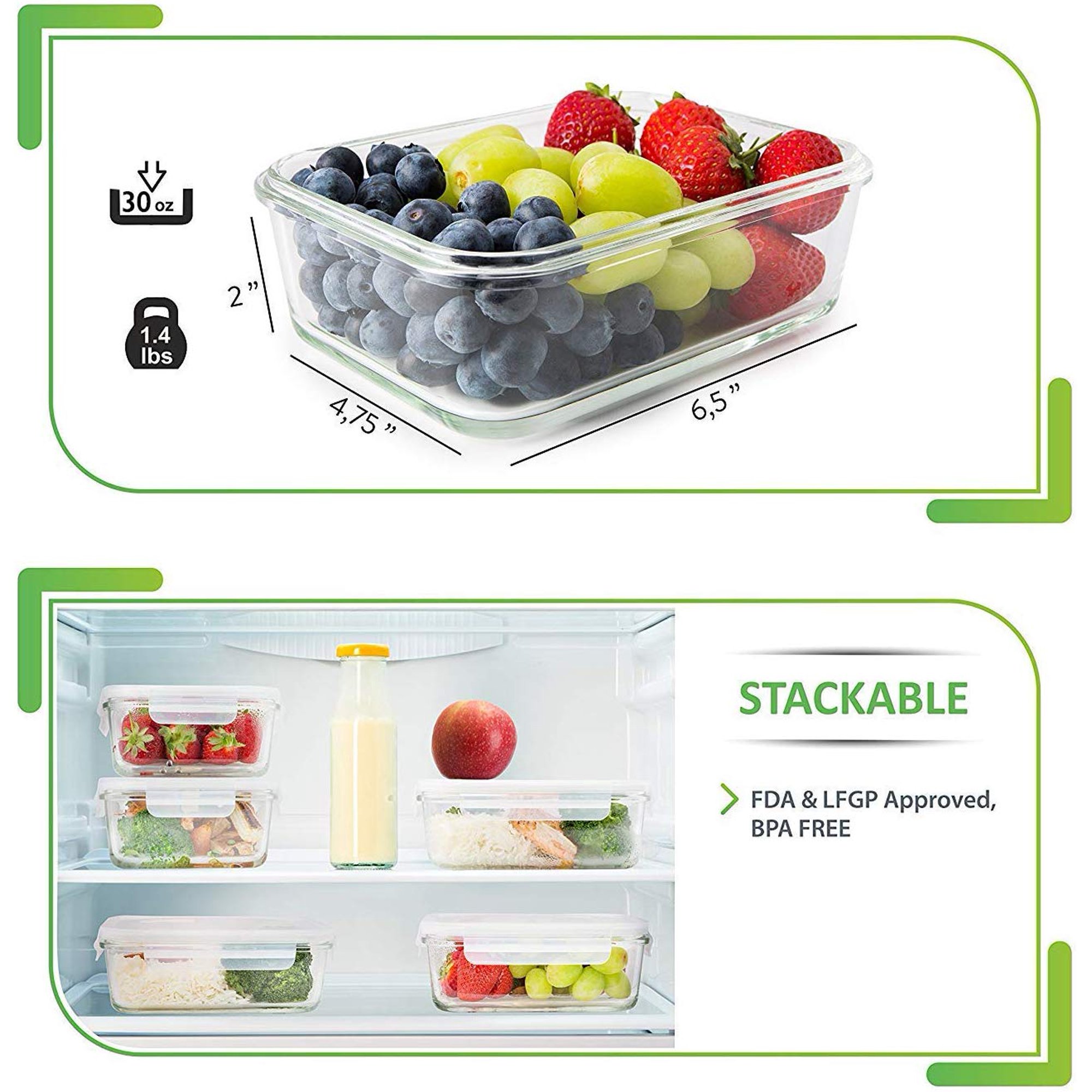 Prep Naturals 30 Ounce Glass Meal Prep Container with Airtight Lids. 5-Pack