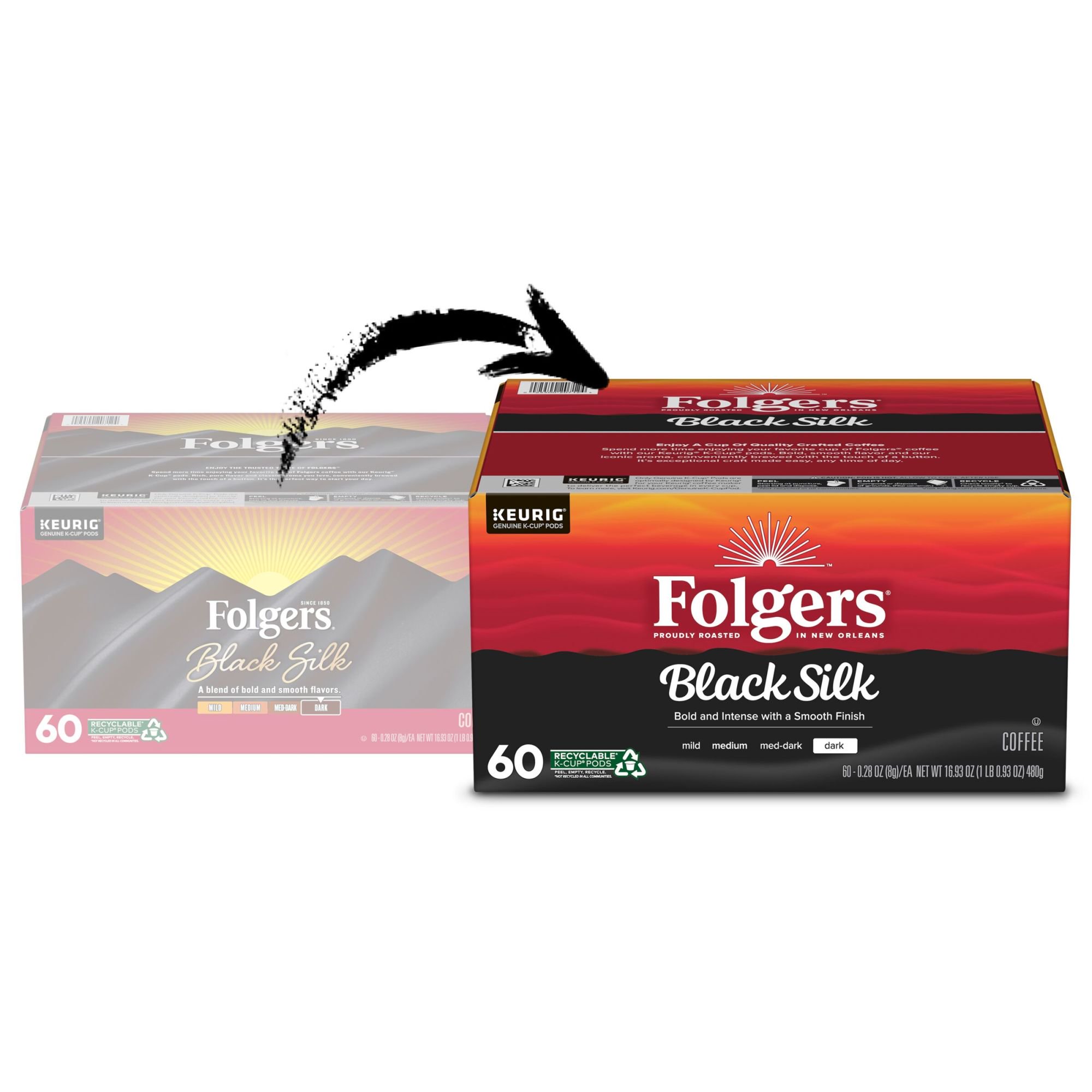 Folgers Black Silk Dark Roast Coffee. 60 Keurig K-Cup Pods