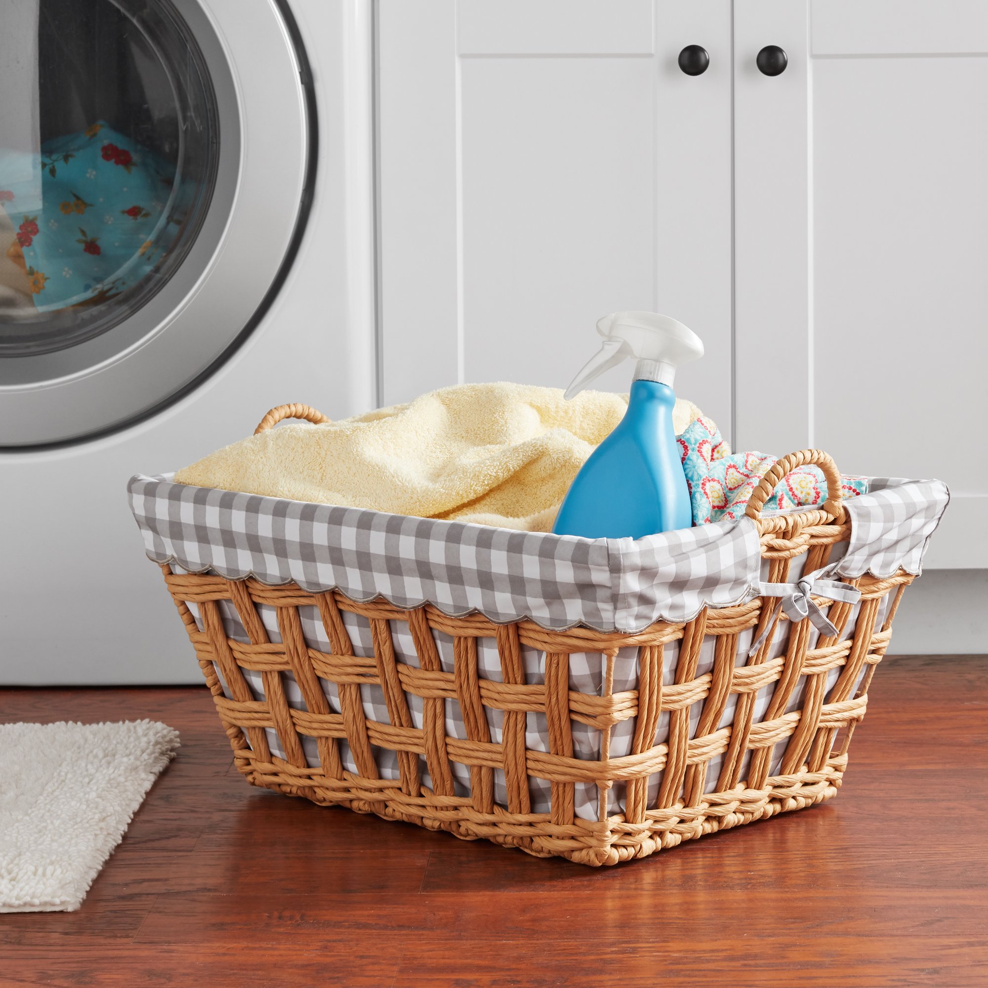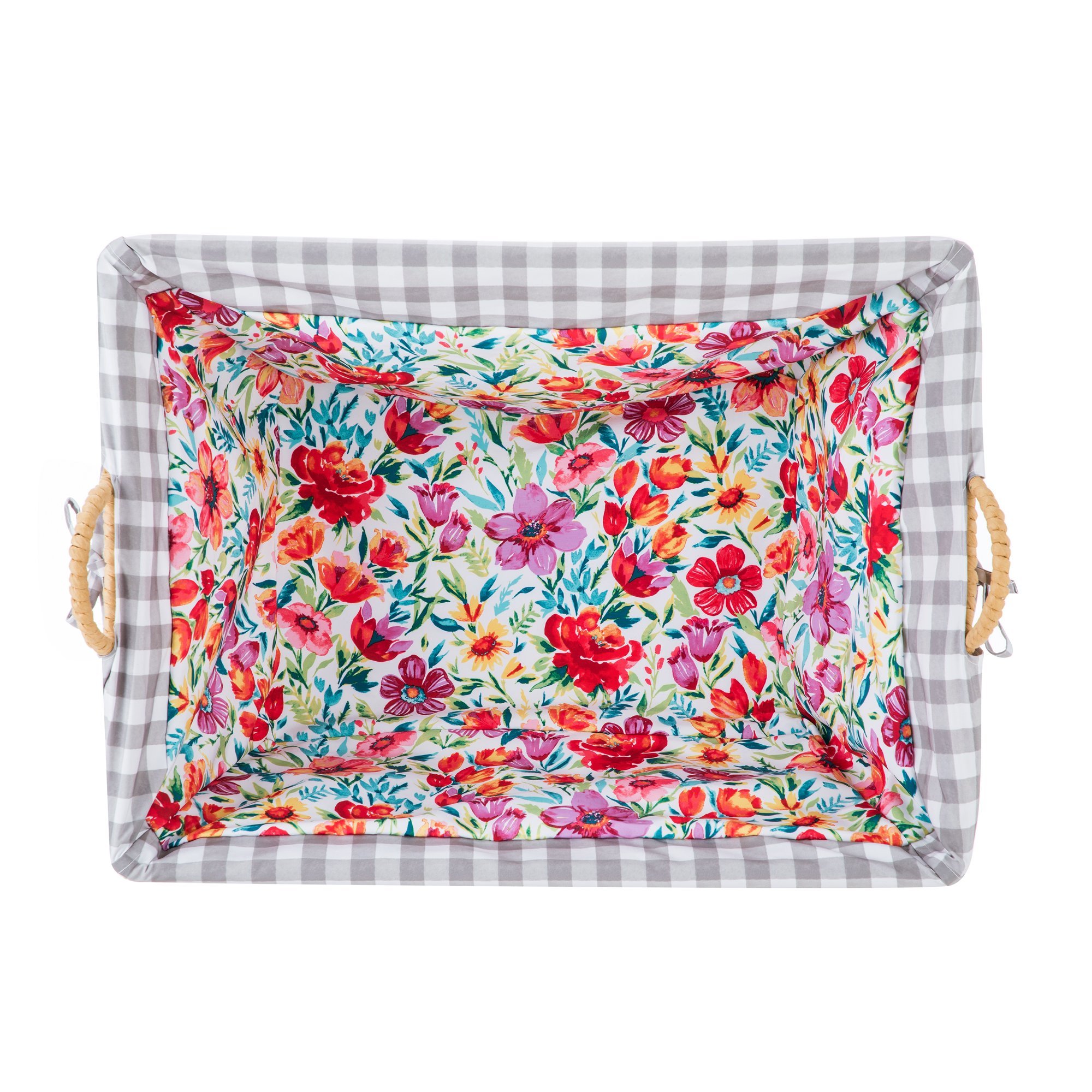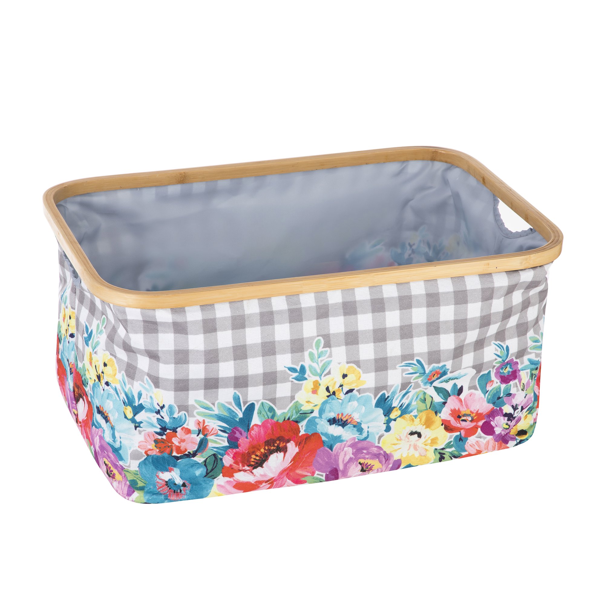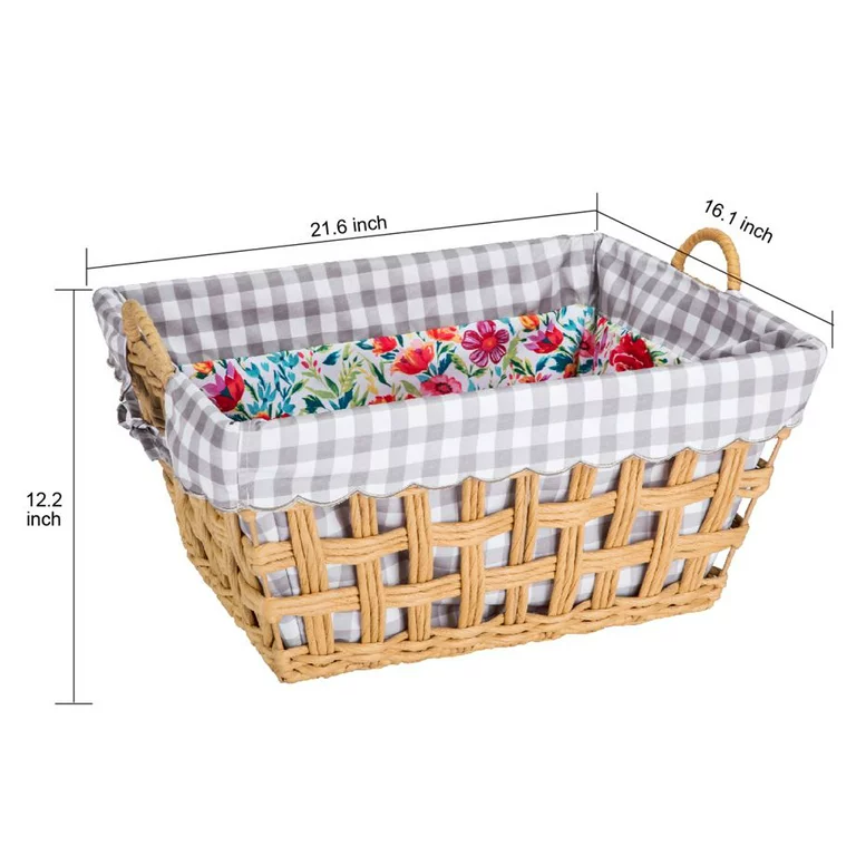 The Pioneer Woman Gingham & Petal Party Paper Rope Laundry Basket with Removable Liner
