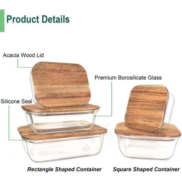 Urban Green Glass Food Storage Container with Wood Lid. 5 Packs