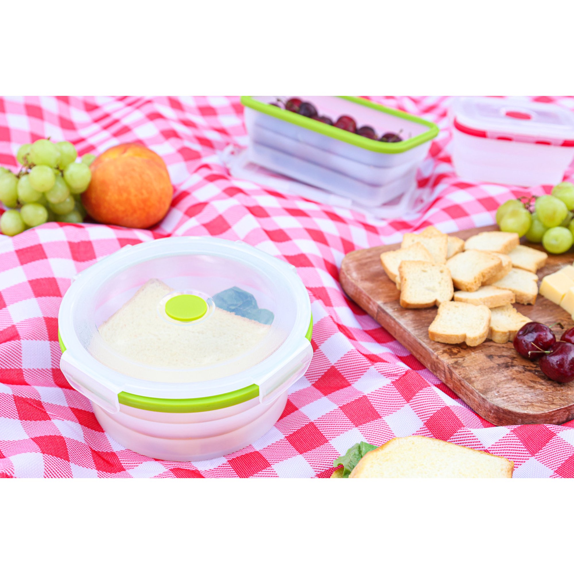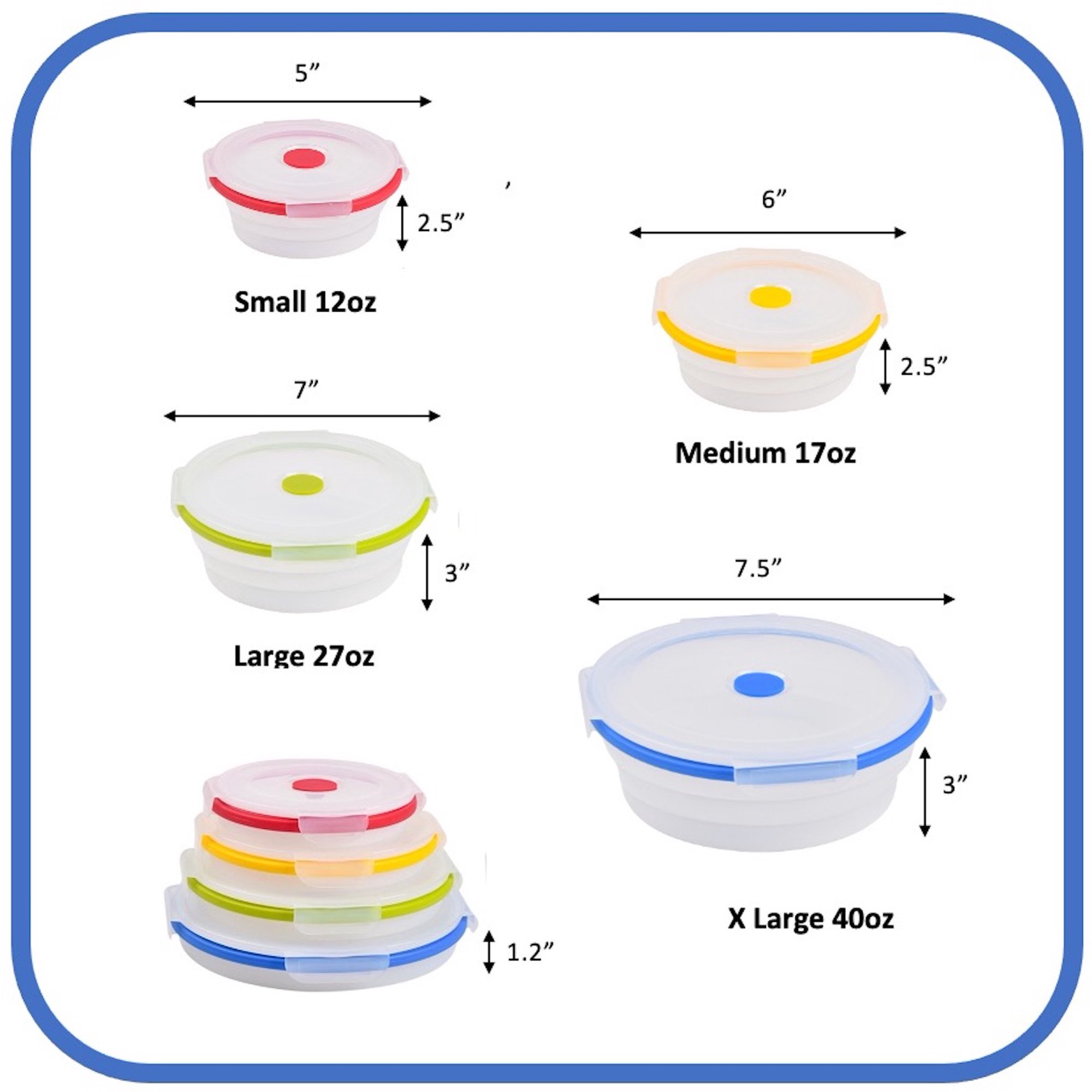 Ecoberi Set of 4 Round Collapsible Food Storage Containers. BPA Free Silicone. Multicolor