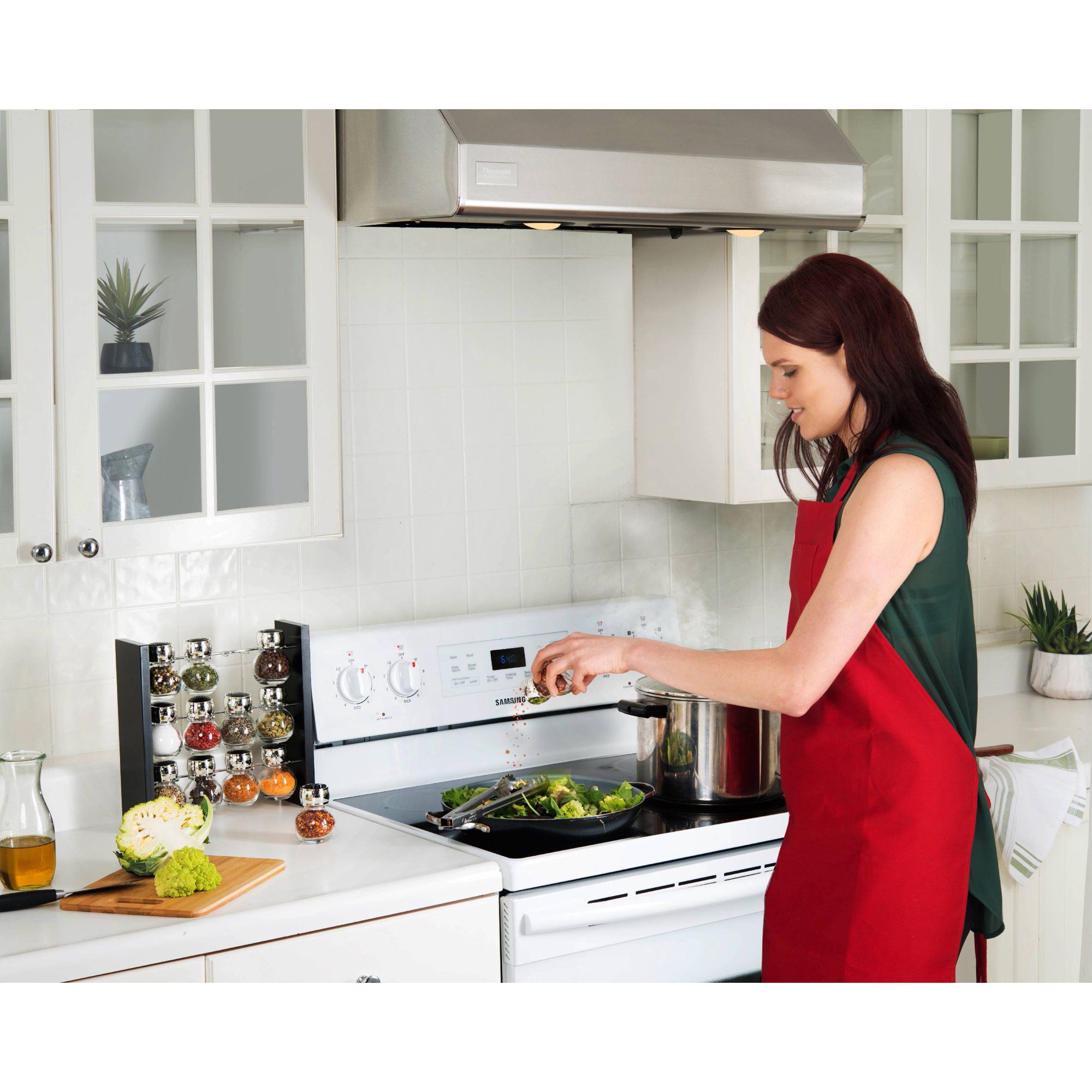 Blumwares Spice Rack Stand with 12 Clear Glass Bottles Sleek and Kitchen Organizer
