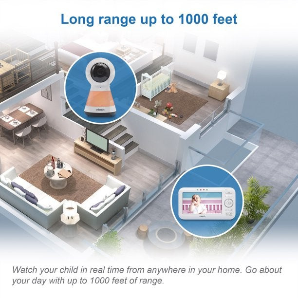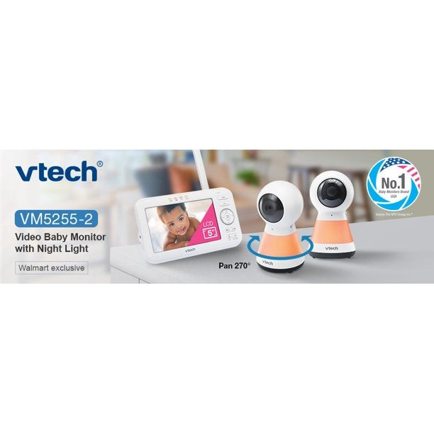 VTech VM5255-2 Two-Camera 5″ Digital Video Baby Monitor with Pan Scan and Night Light