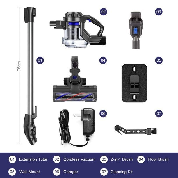 Moosoo Cordless Vacuum 4-In-1 Lightweight Stick Vacuum Cleaner. Blue (XL-618A)