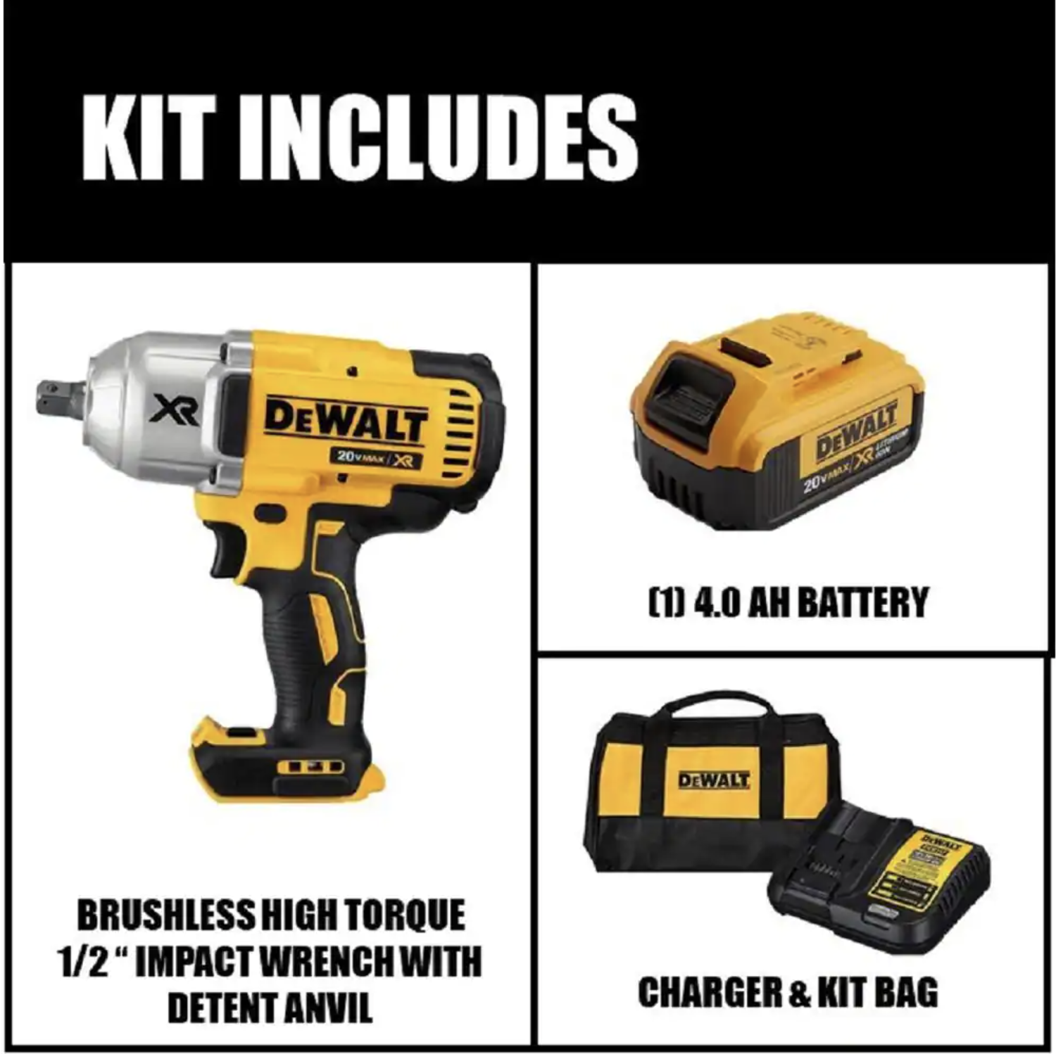 Dewalt 20-Volt MAX XR Cordless Brushless 1/2 in. High Torque Impact Wrench with Detent Pin Anvil. (1) 20-Volt 4.0Ah Battery (DCF899M1)