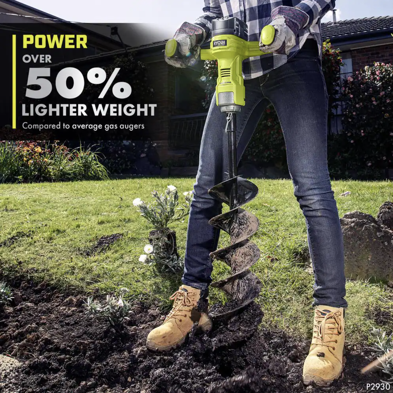Ryobi ONE+ HP 18V Brushless Cordless Earth Auger with 6 in. Bit with 4.0 Ah Battery and Charger (P2930VNM)