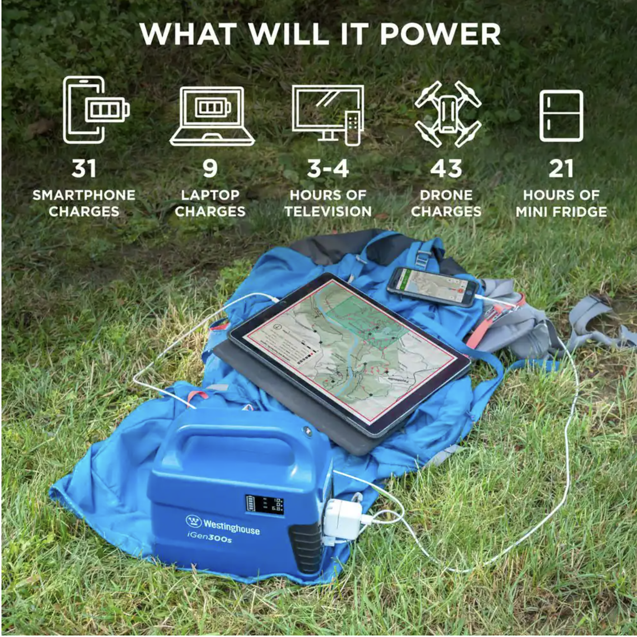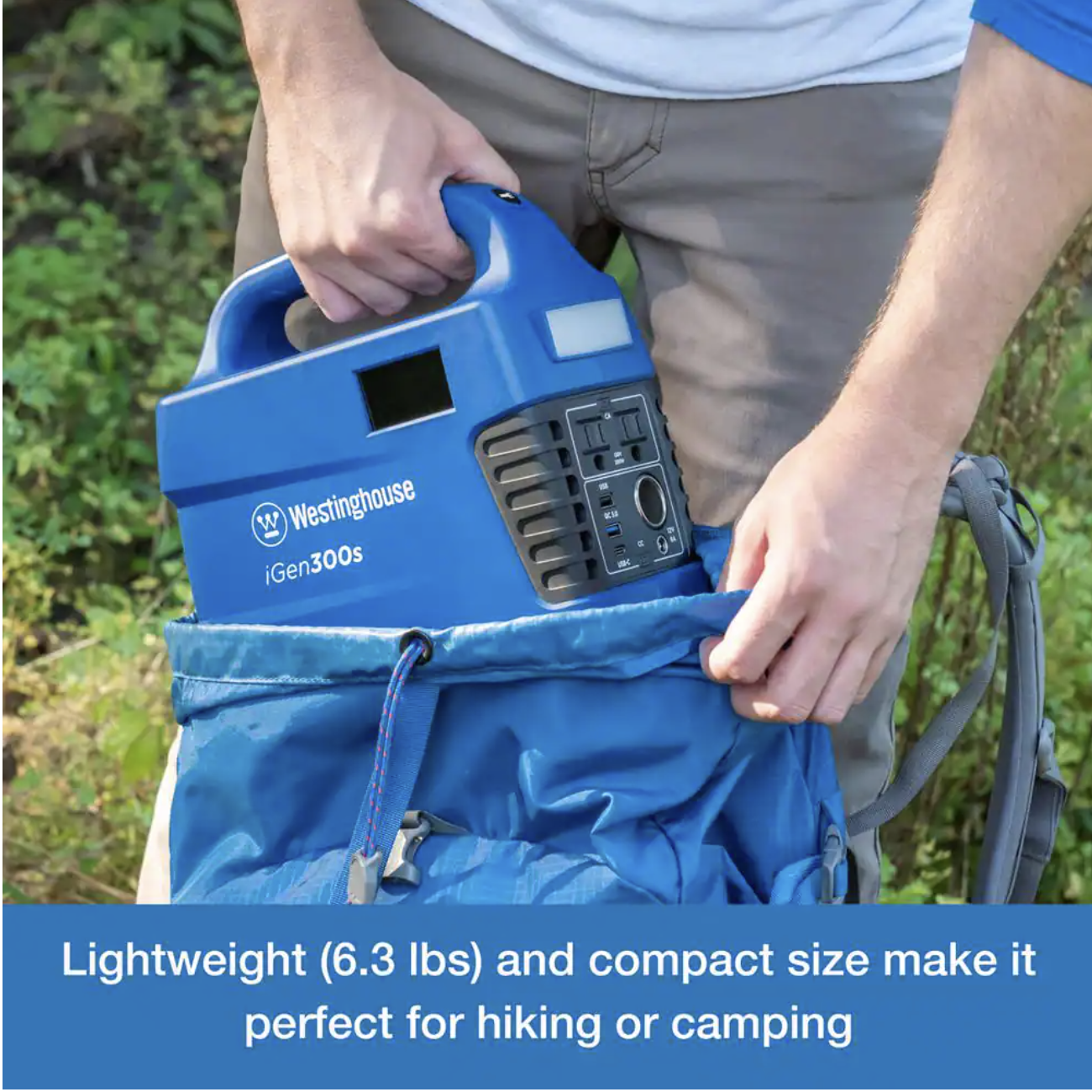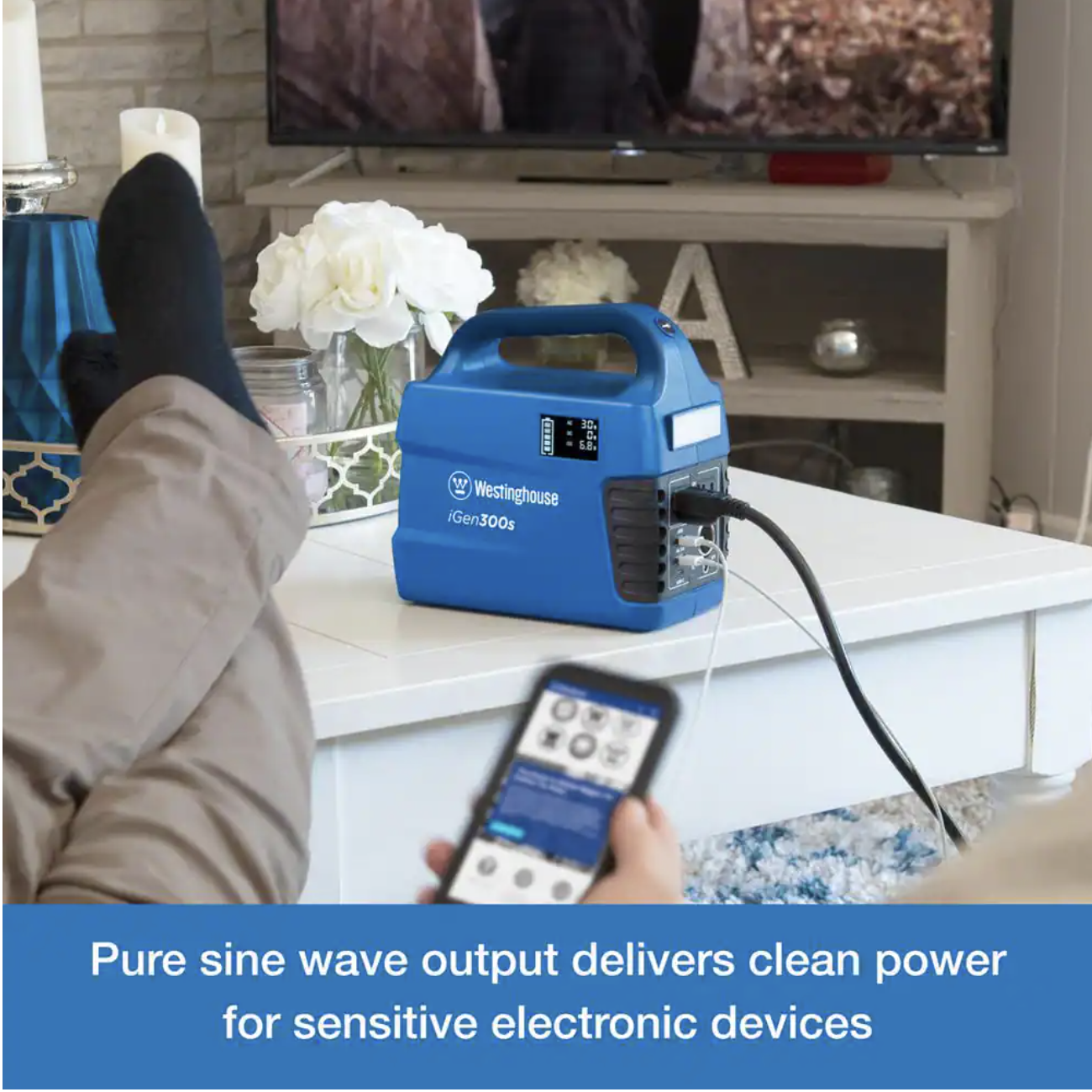 Westinghouse iGen300s 300/600-Watt Pure Sine Wave Lithium-Ion Portable Power Station with Power Inverter. LED Display