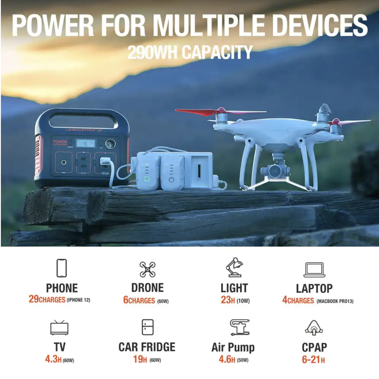 Jackery 200-Watt Continuous/400-Watt Peak Output Power Station Explorer 290 Push Button Start Battery Generator