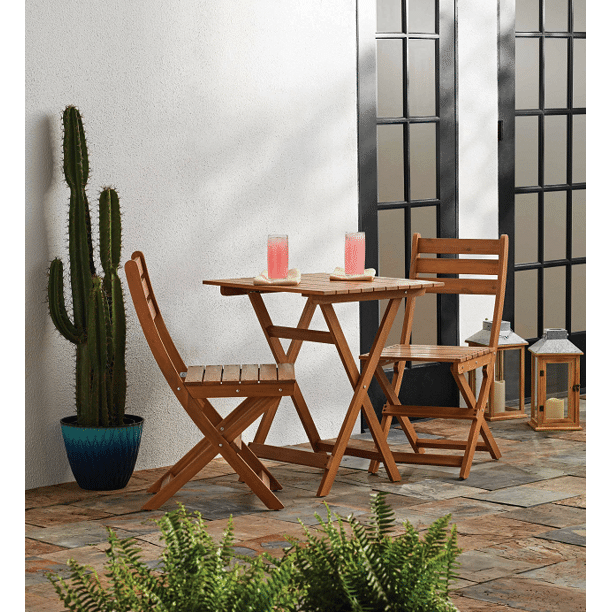 Mainstays Outdoor Patio 3-Piece Wood Bistro Set. Natural Color