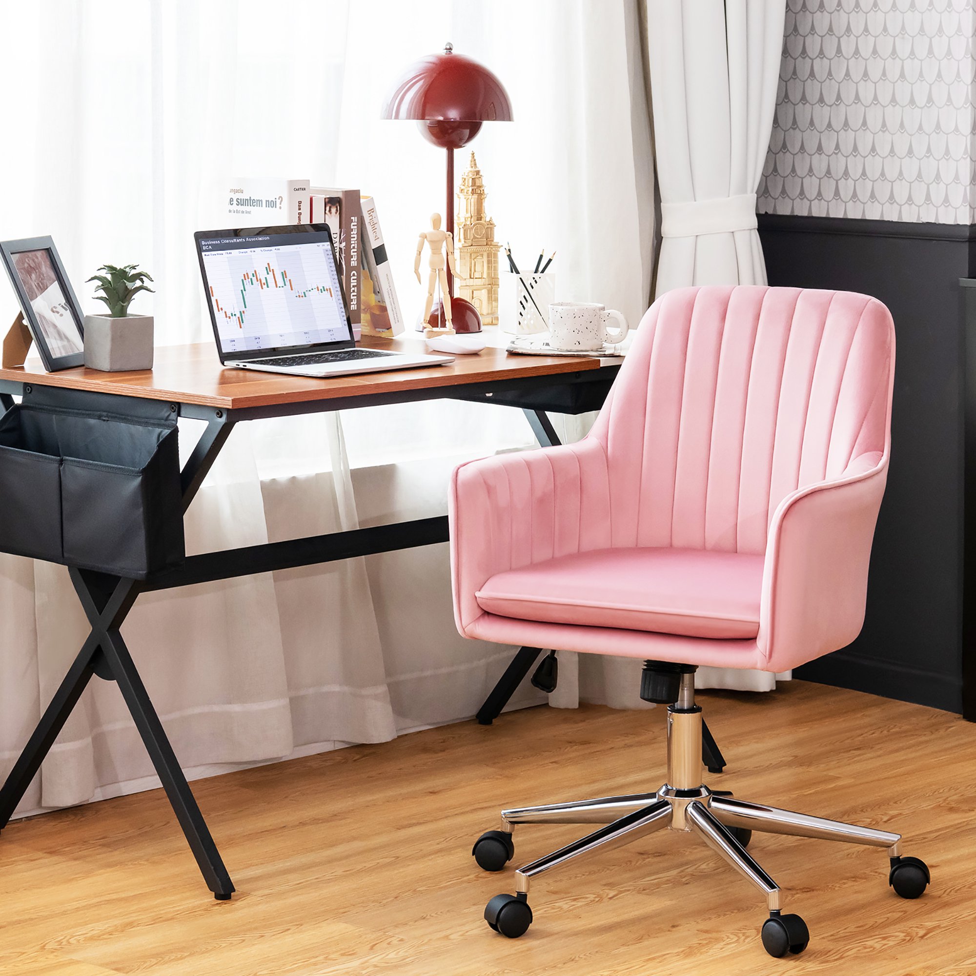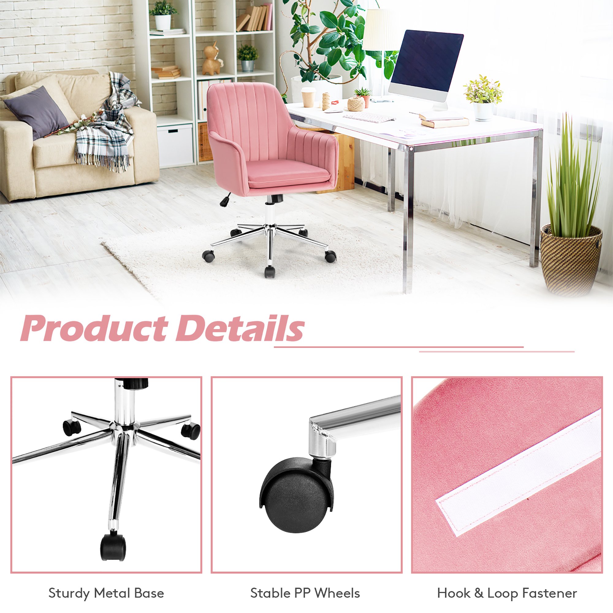 Costway Velvet Accent Office Armchair Adjustable Swivel Removable Cushion. Pink
