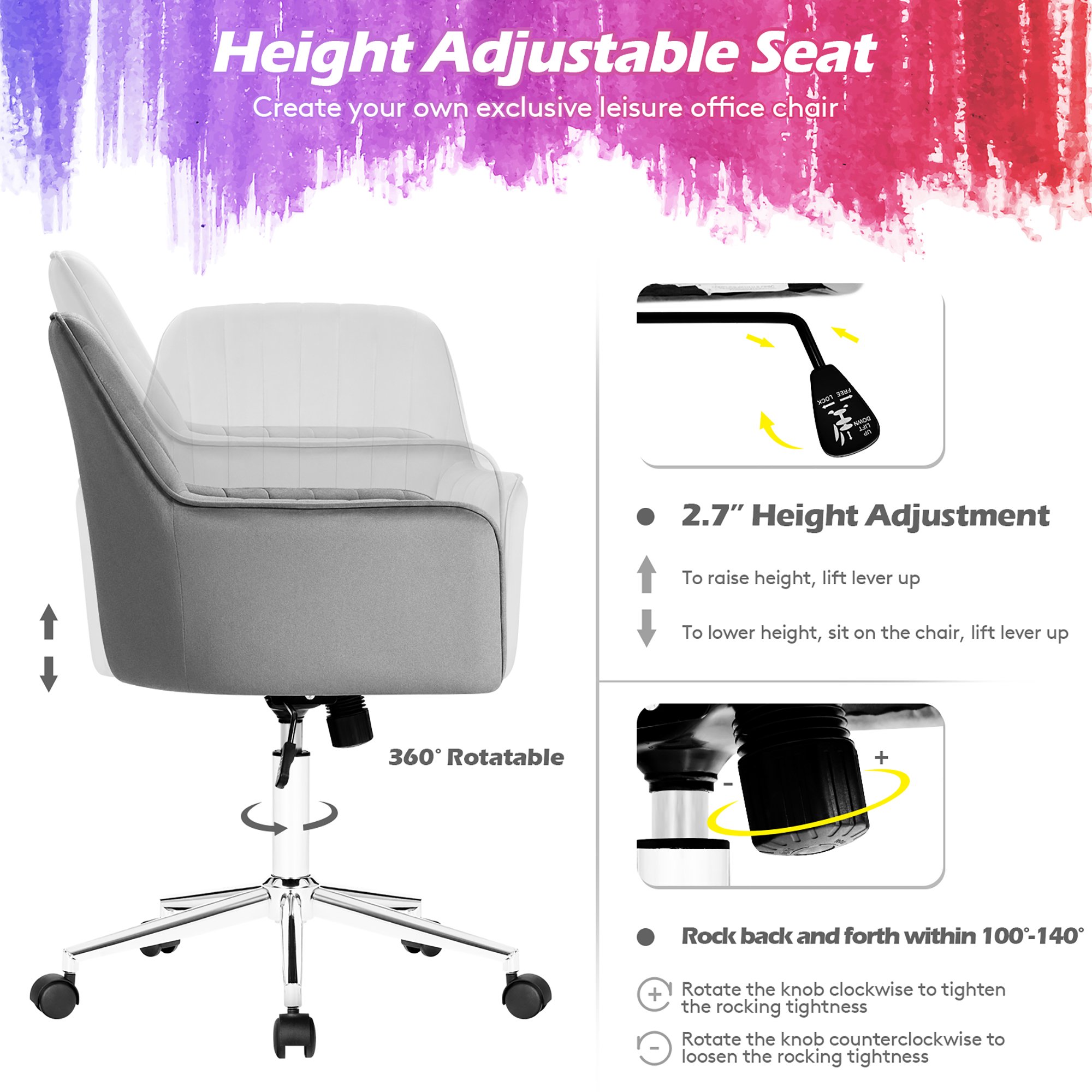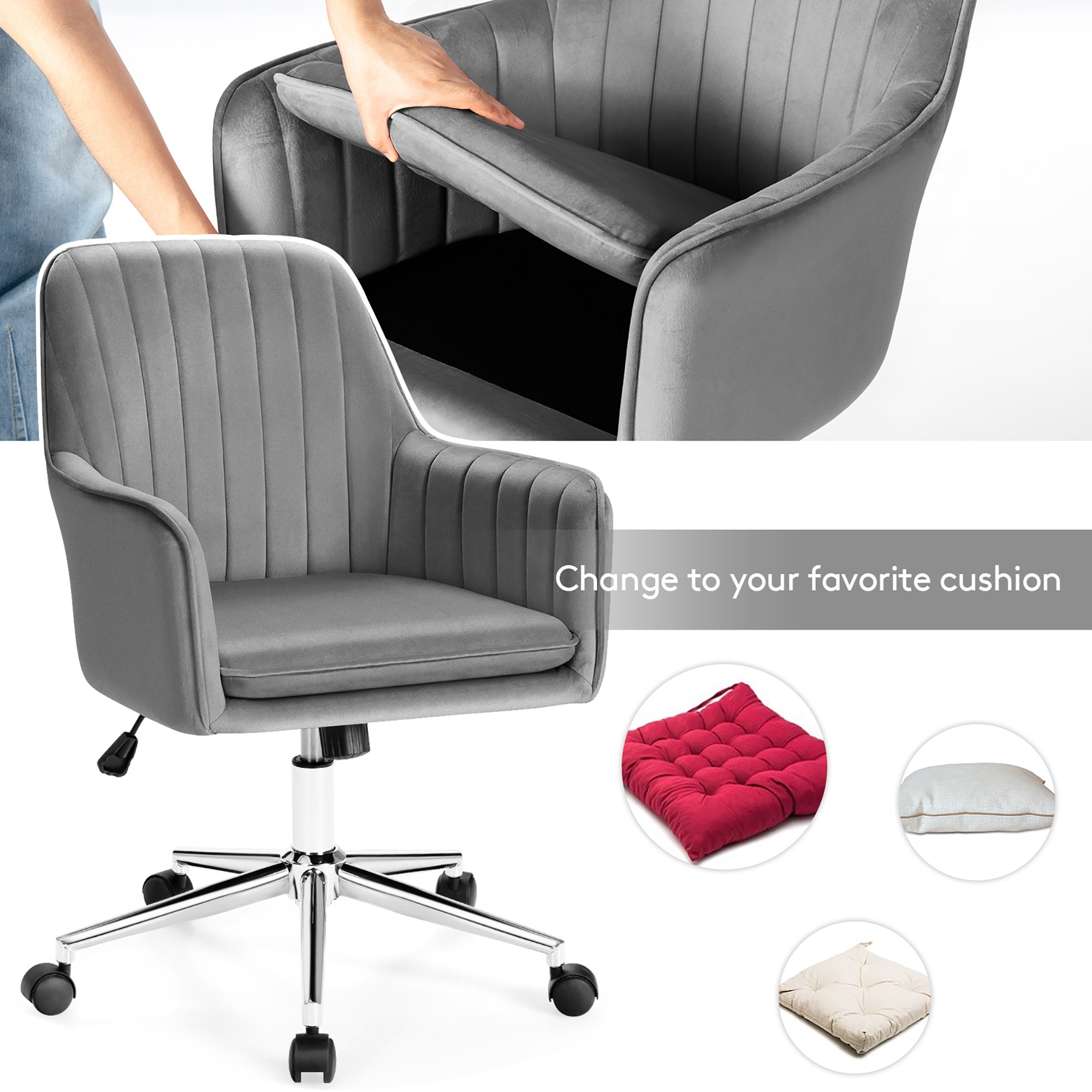 Costway Velvet Accent Office Armchair Adjustable Swivel Removable Cushion. Gray